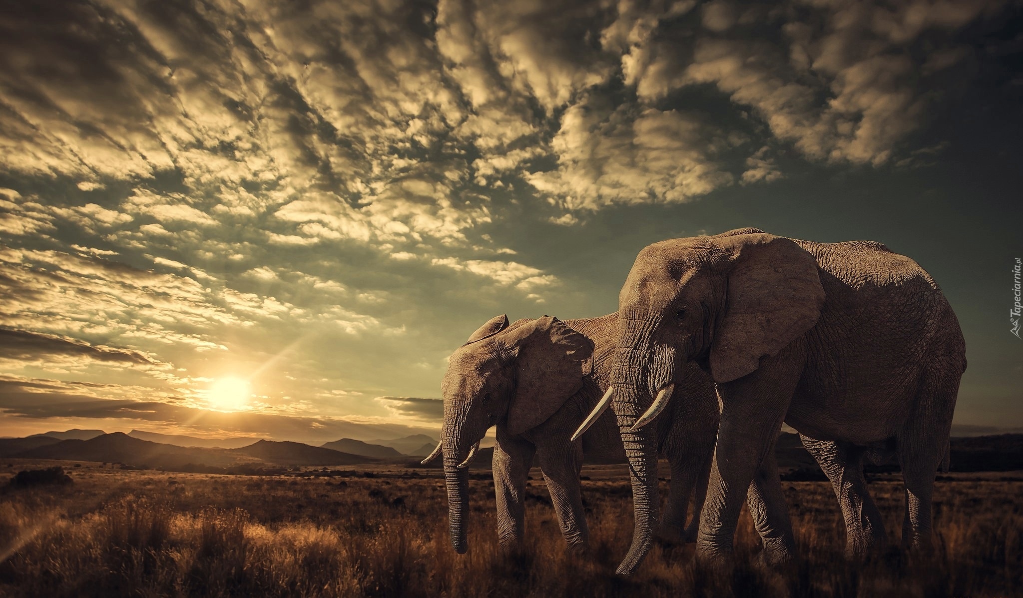 Edytor tapety: Wschód Słońca, Słonie