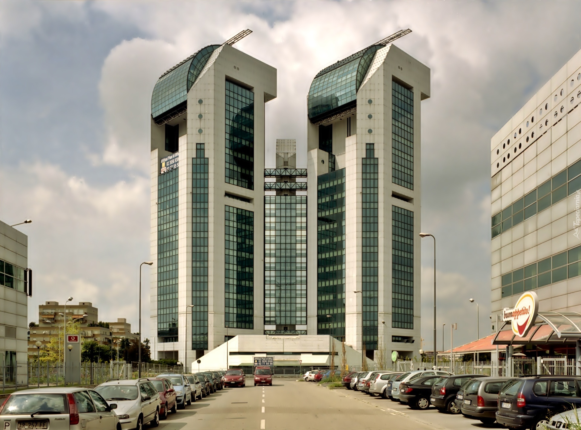 Edytor tapety: Włochy, Drapacze, Chmur, Parking, Samochody