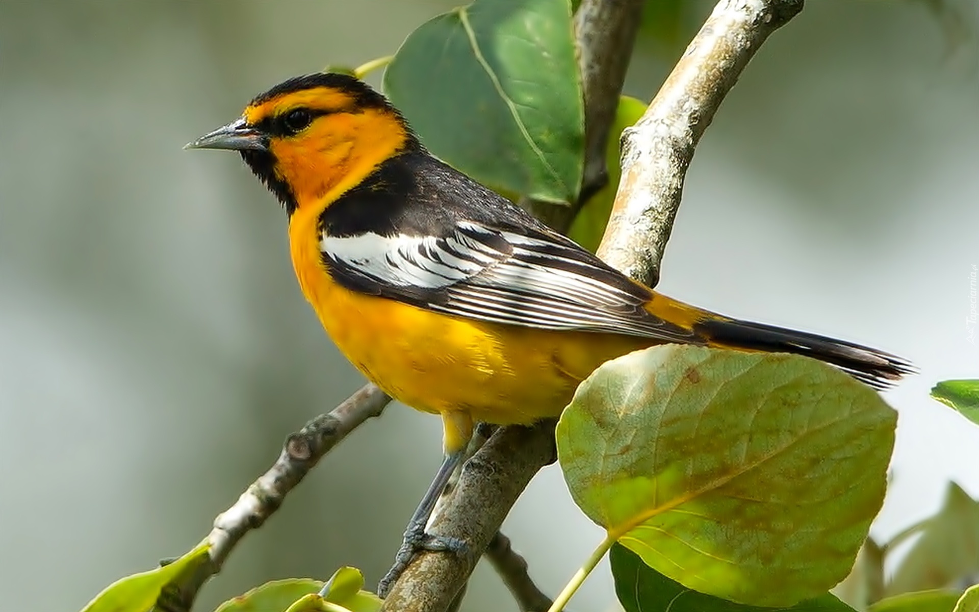 Edytor tapety: Ptak, Pliszka, Czarnogłowa, Gałązka, Liście