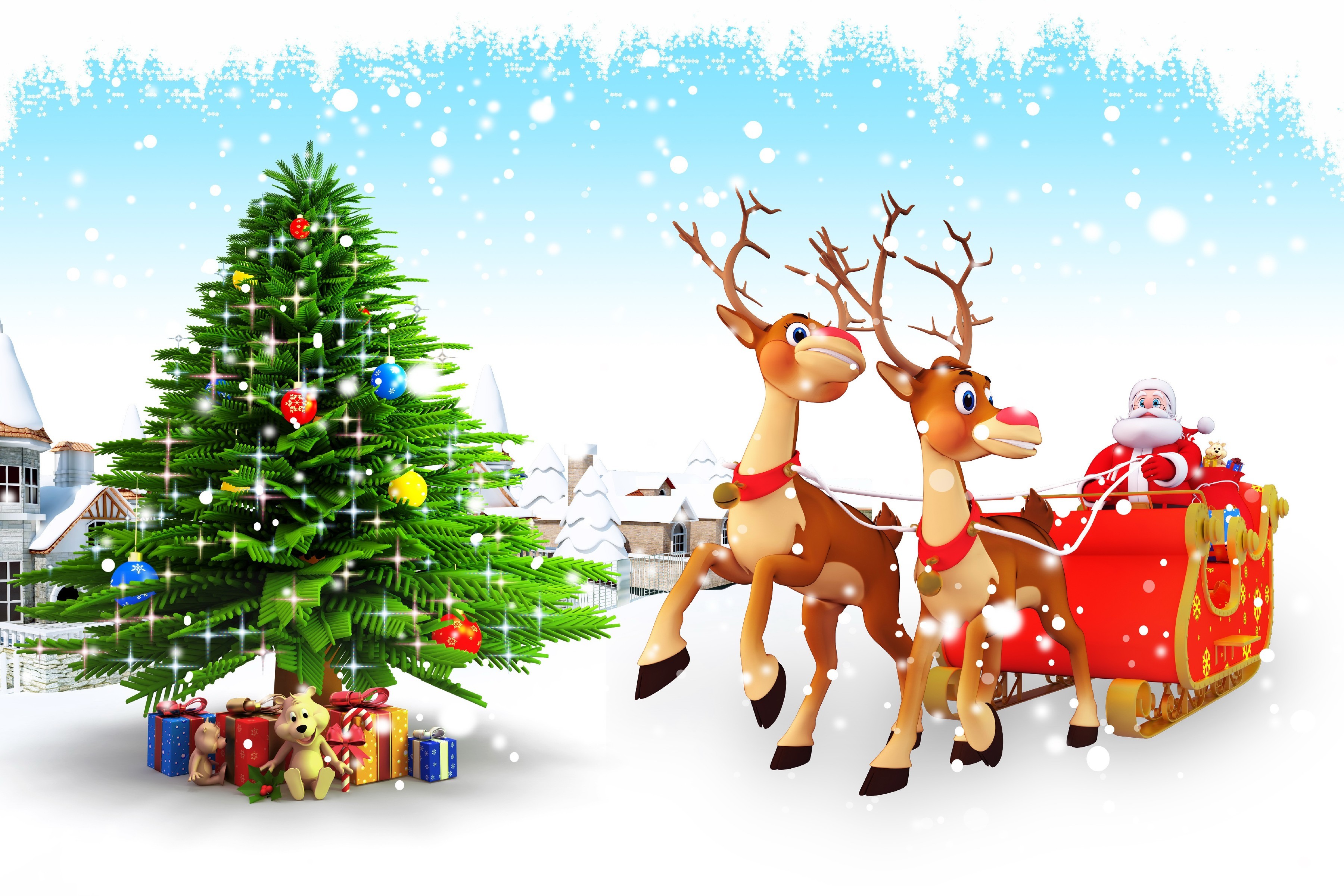 Edytor tapety: Boże Narodzenie, Choinka, Prezenty, Mikołaj, Renifery