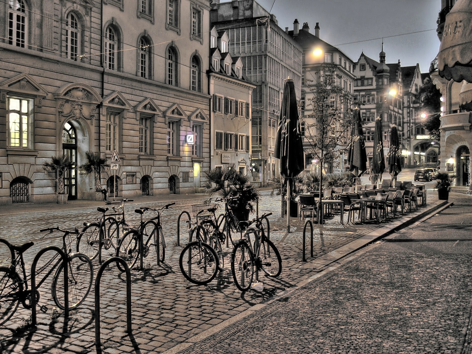 Edytor tapety: Kamienice, Ulica, Rowery, Latarnie