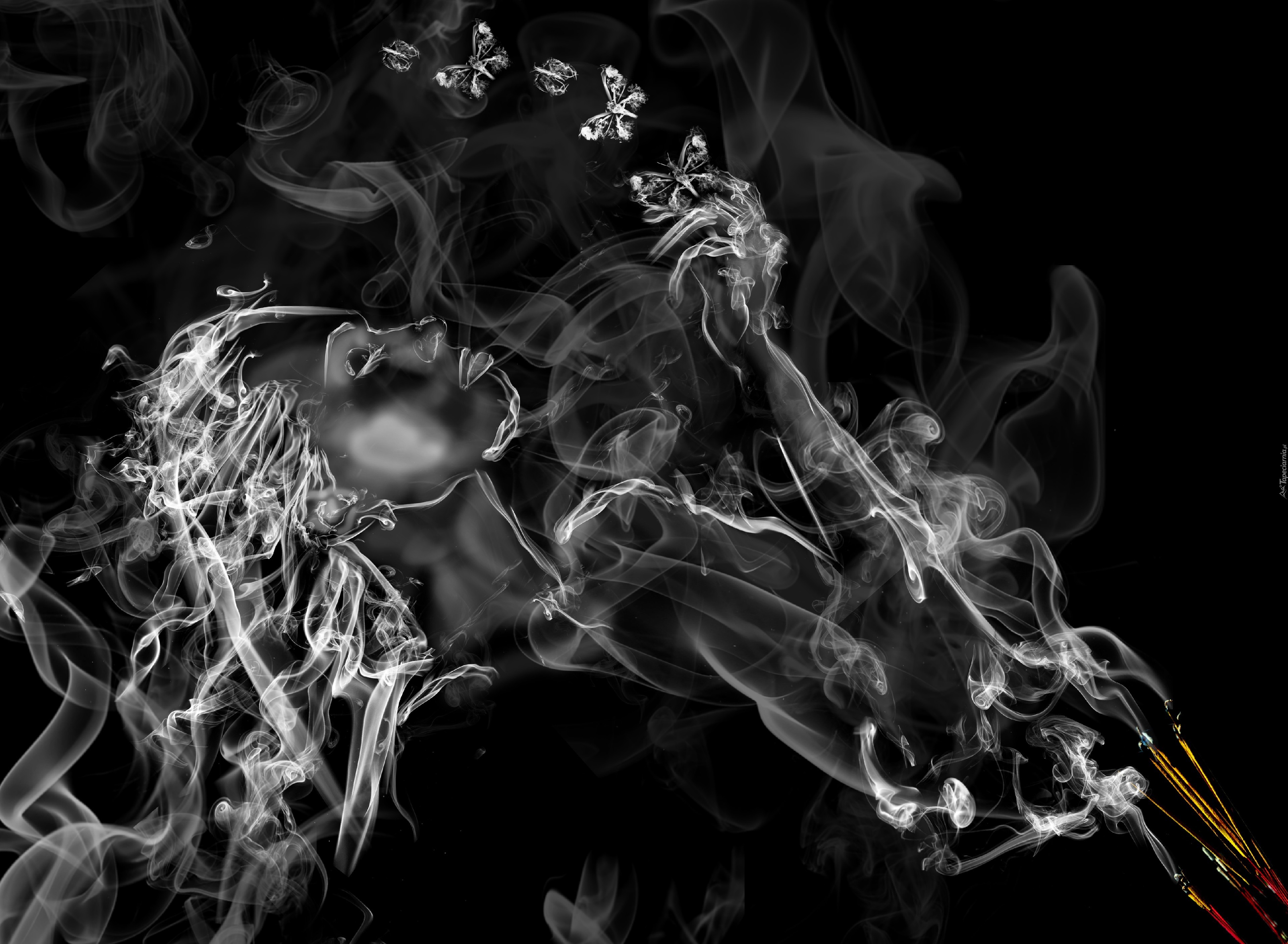 Edytor tapety: Kobieta, Twarz, Motyle, Dym