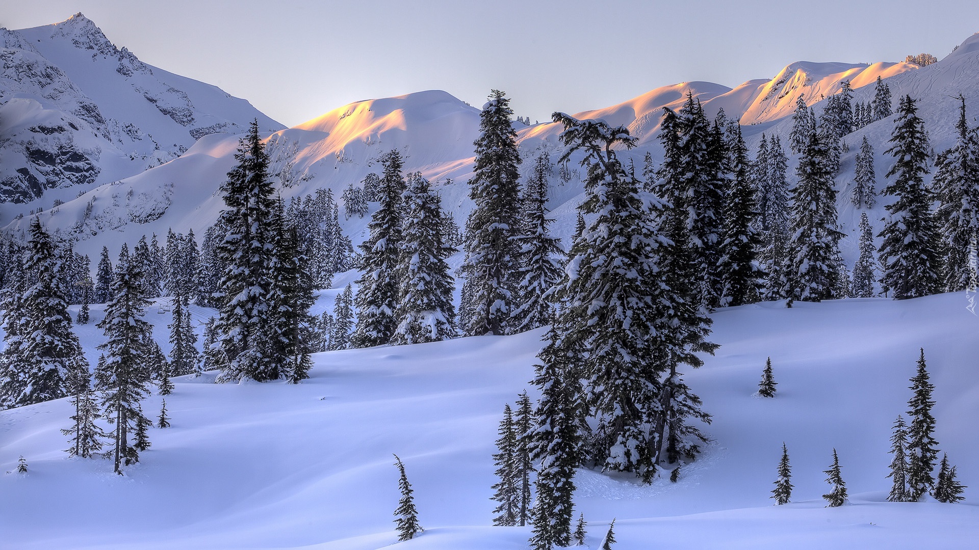 Edytor tapety: Zima, Góry, Las