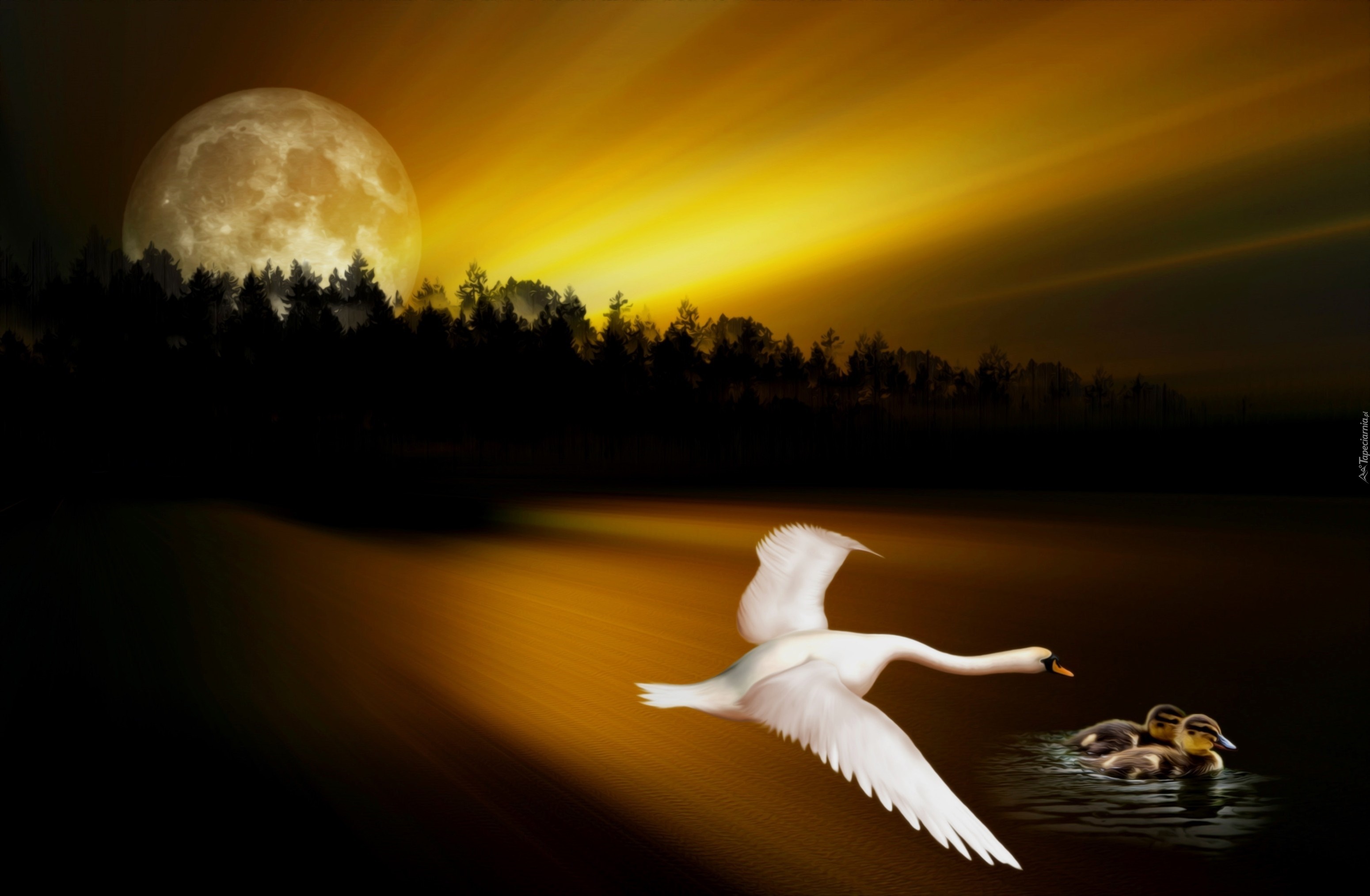 Edytor tapety: Łabędzica, Jezioro, Księżyc, Fantasy