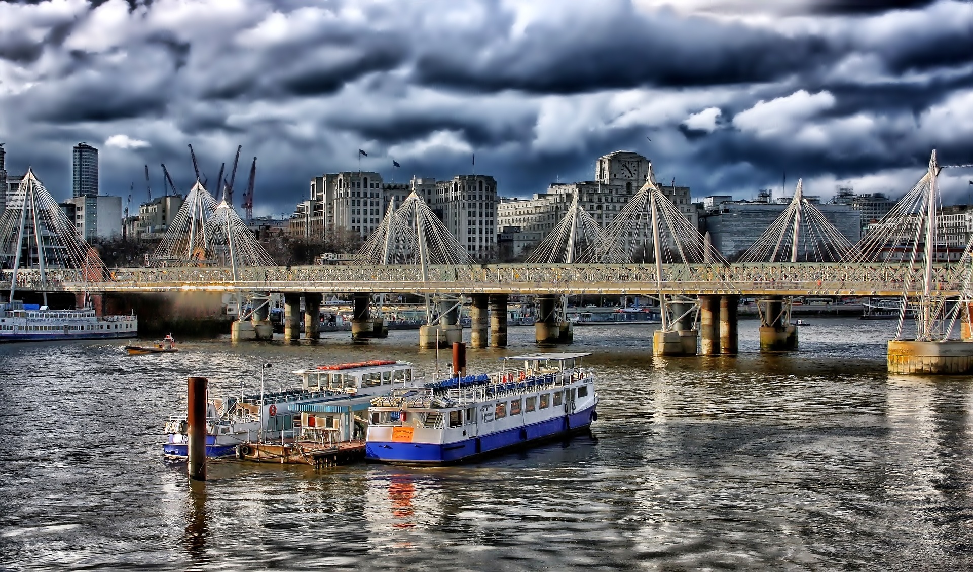 Edytor tapety: Londyn, Most, Rzeka, Chmury, Statki, Wycieczkowe