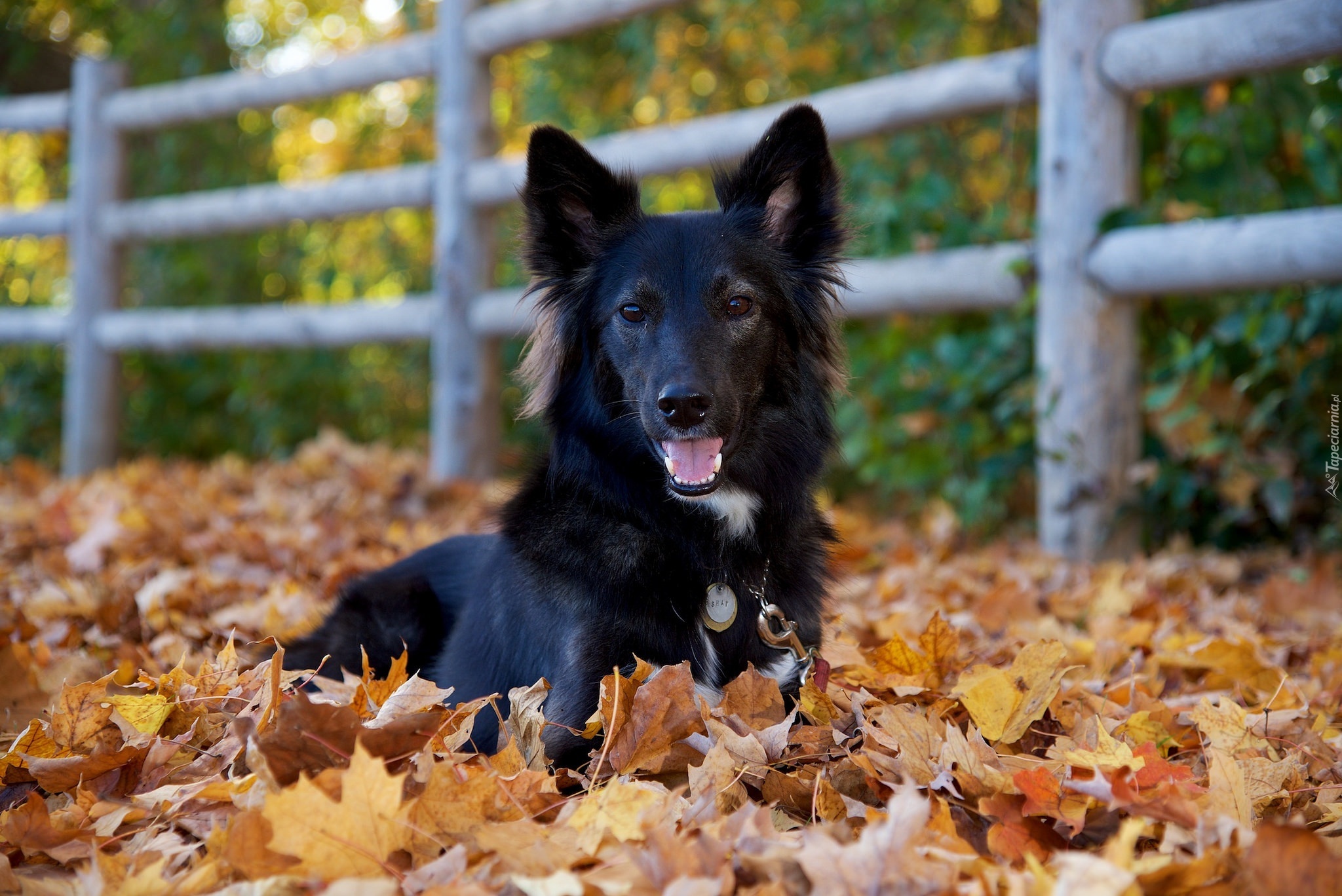 Edytor tapety: Czarny, Piesek,Obroża, Liście