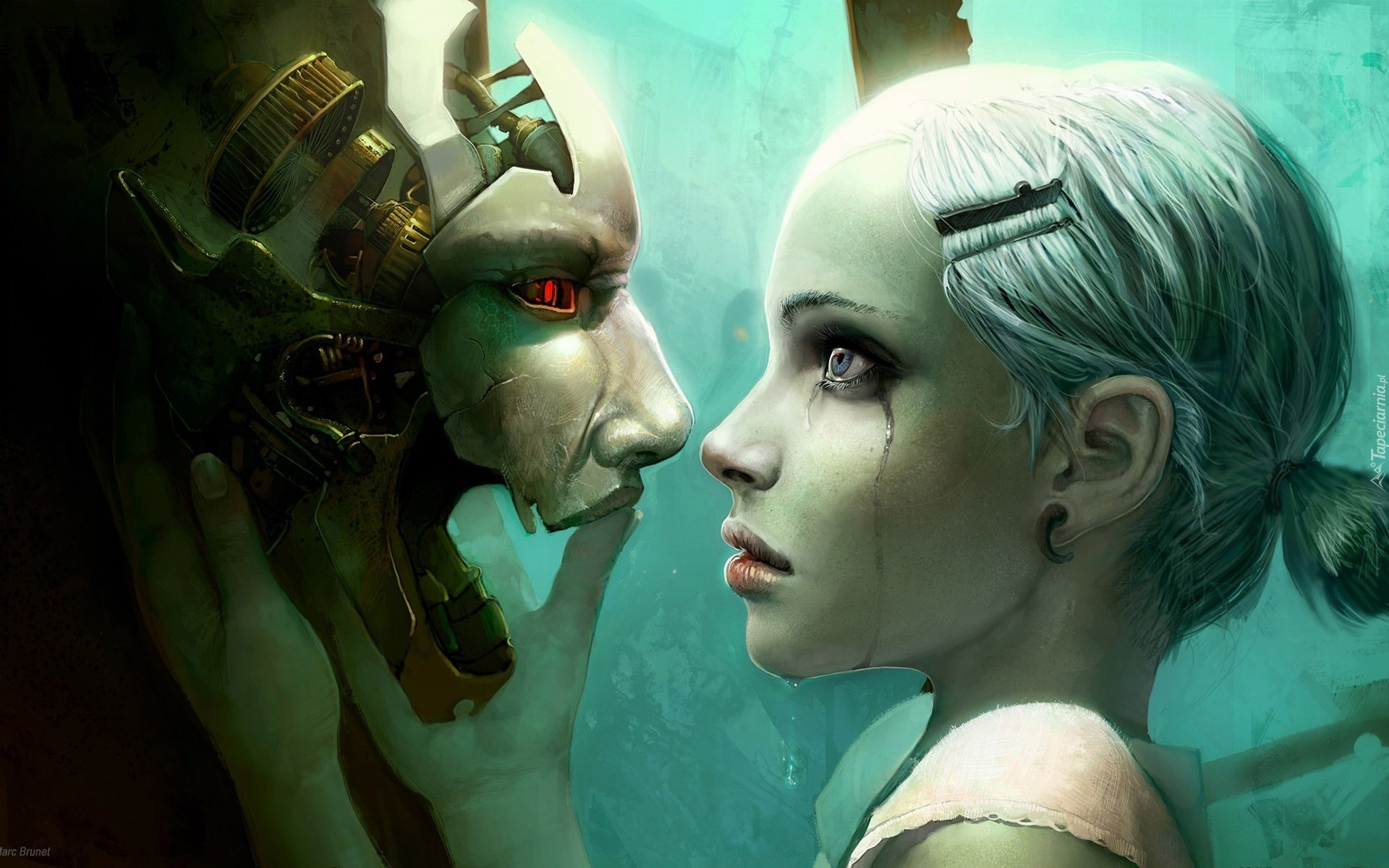 Edytor tapety: Kobieta, Robot, Łza
