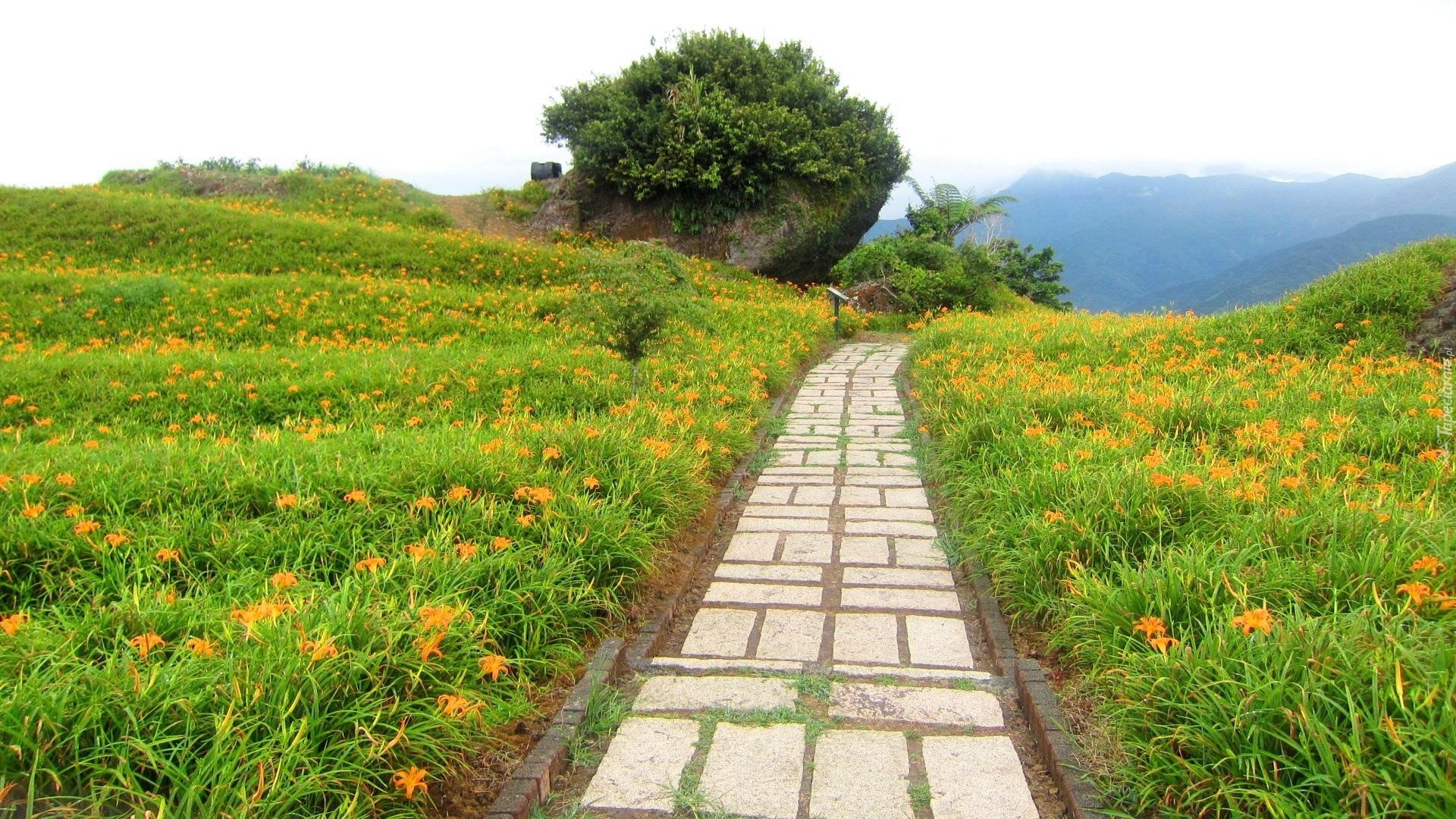 Edytor tapety: Ścieżka, Łąka, Góry