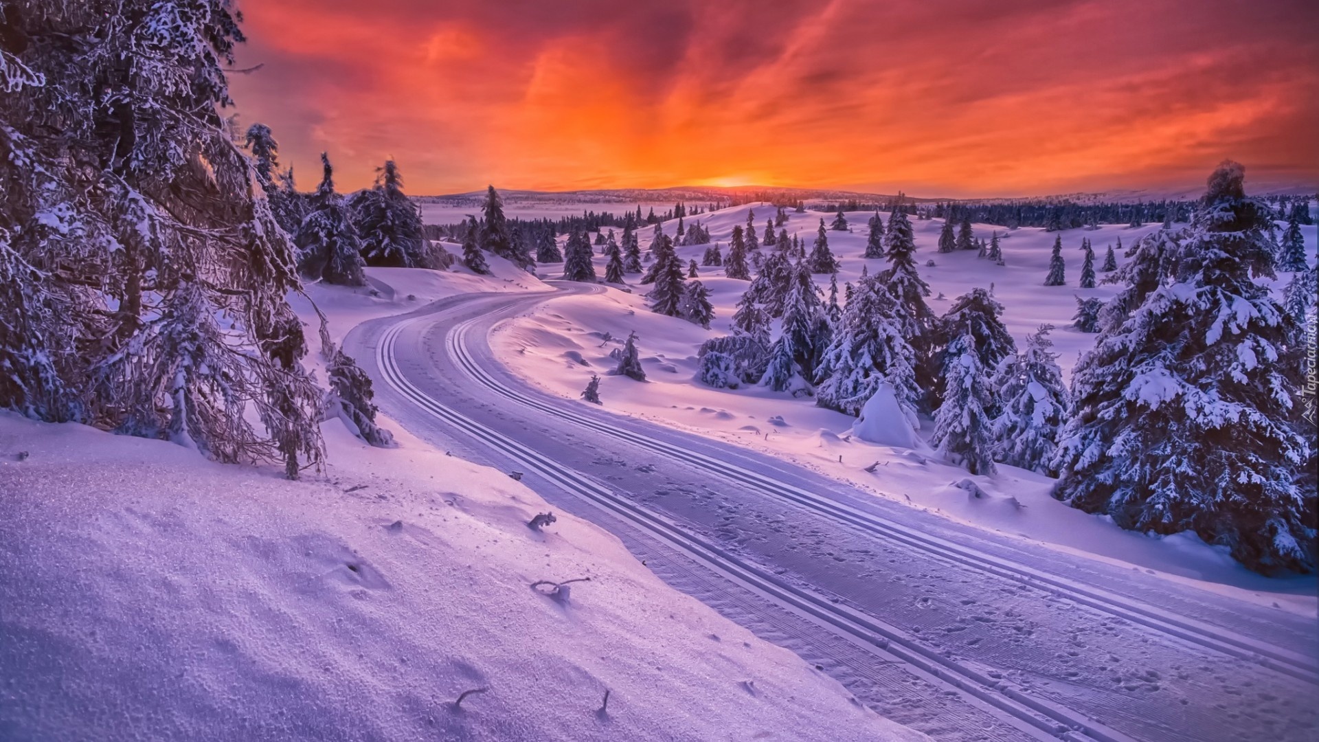 Edytor tapety: Zima, Droga, Zachód, Słońca