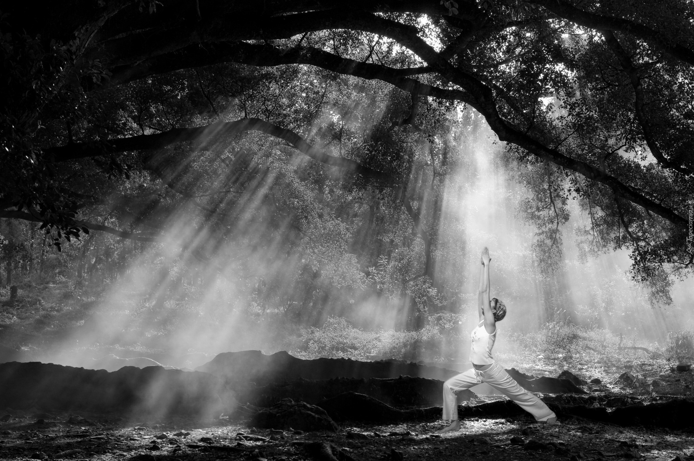 Edytor tapety: Promienie, Słoneczne, Drzewo, Dziewczynka