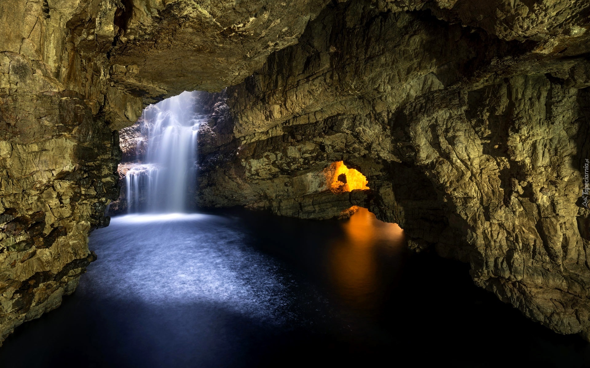 Edytor tapety: Grota, Wodospad, Przebijające, Światło