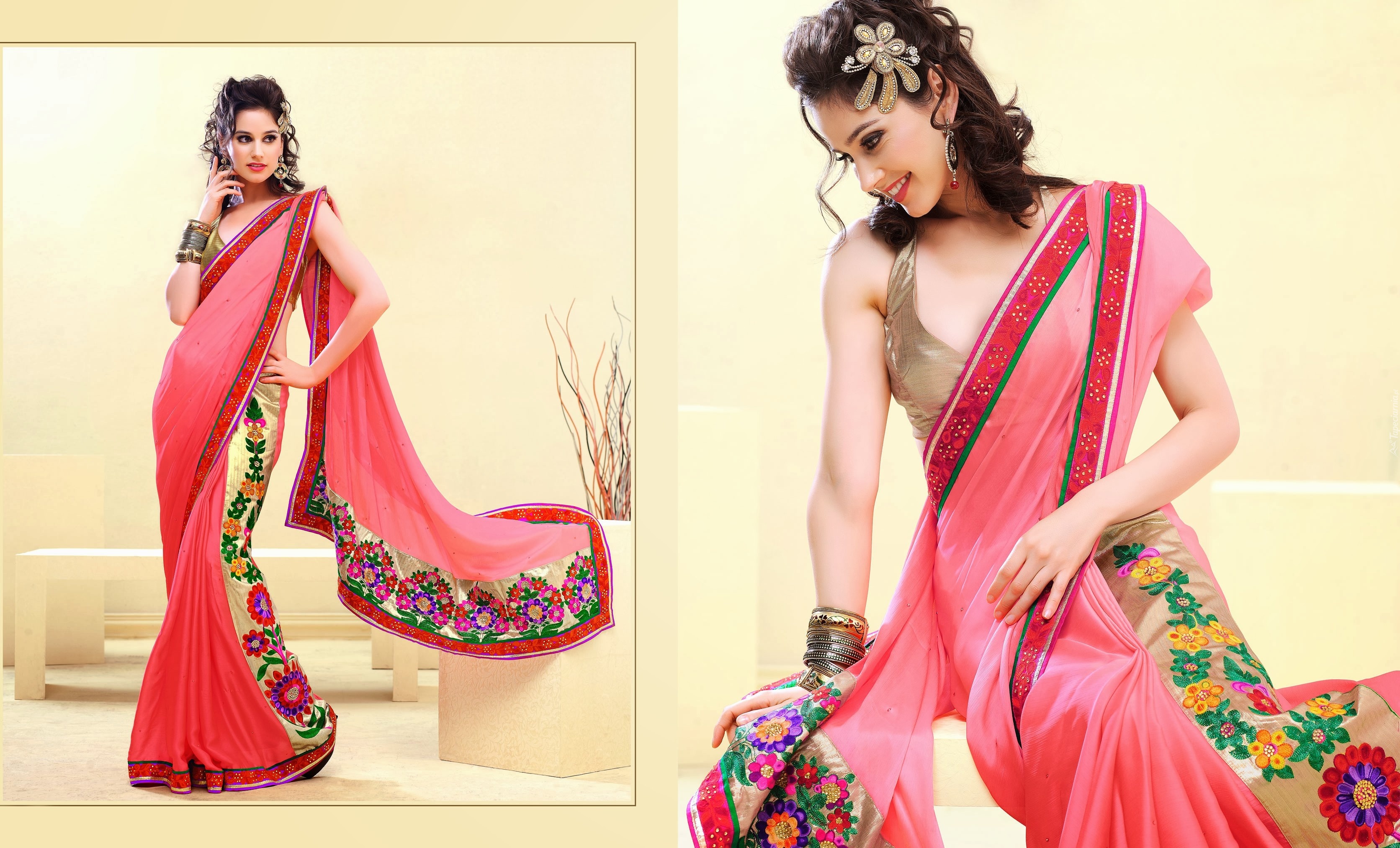 Edytor tapety: Kobieta, Strój, Sari, Biżuteria, Makijaż