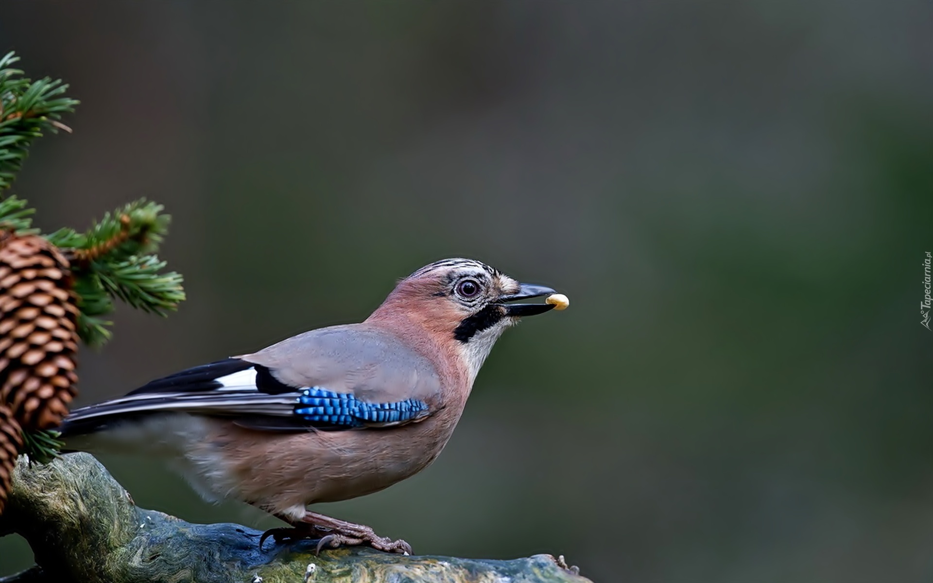 Edytor tapety: Ptak, Sójka, Szyszka, Gałązka