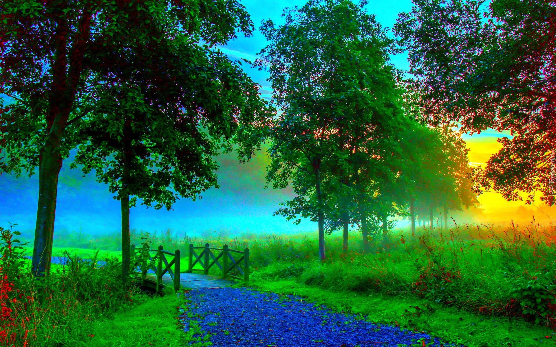 Edytor tapety: Mostek, Droga, Mgła, Drzewa