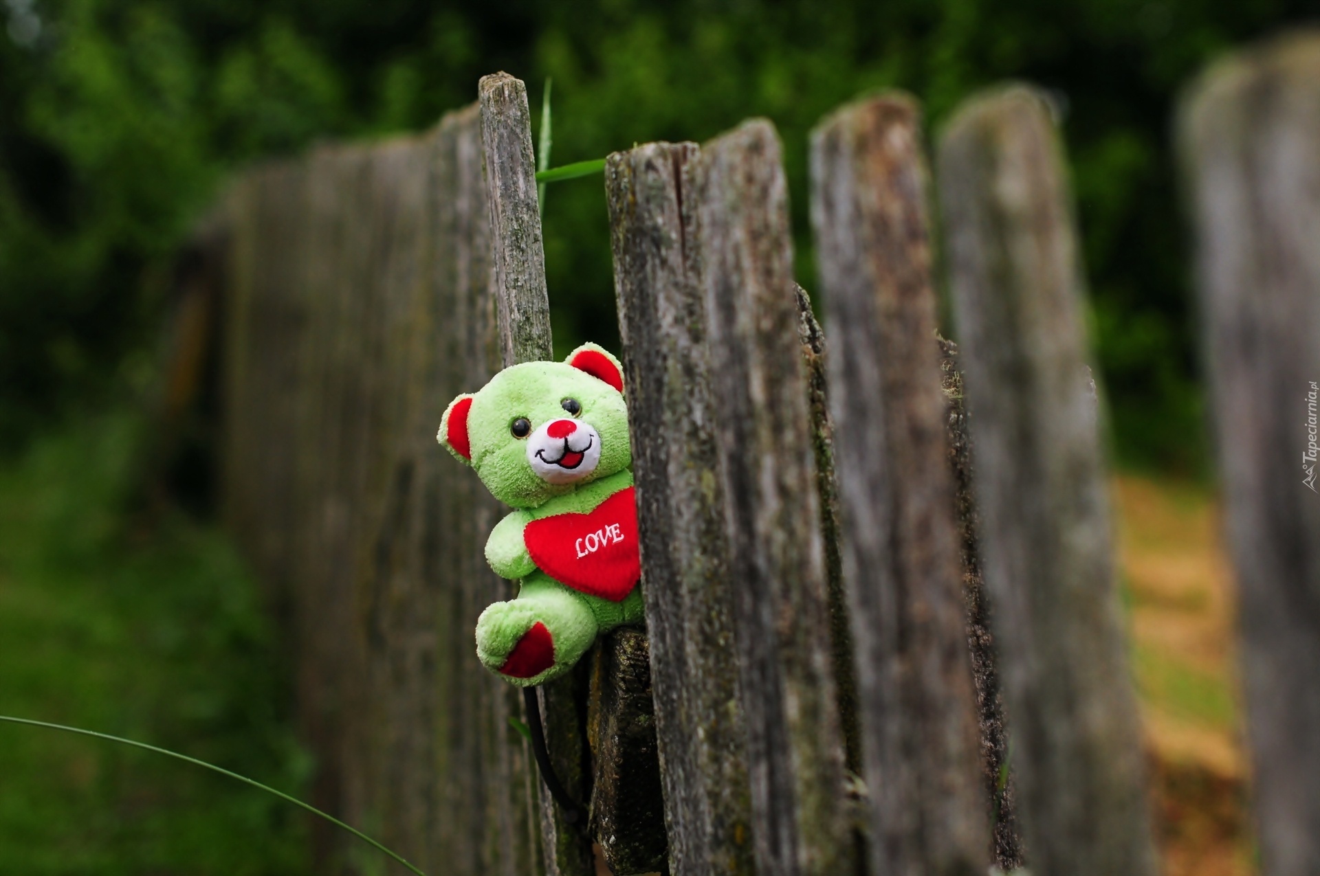 Edytor tapety: Walentynki, Miś, Płot