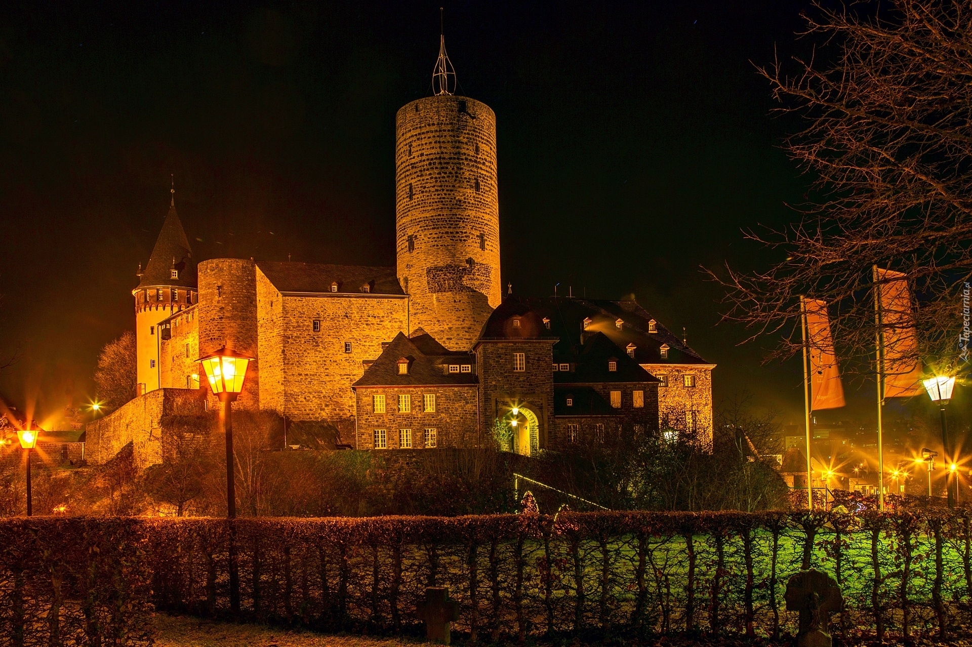 Edytor tapety: Oświetlony, Zamek Genovevaburg, Genoveva Castle, Miasto Mayen, Niemcy, Noc