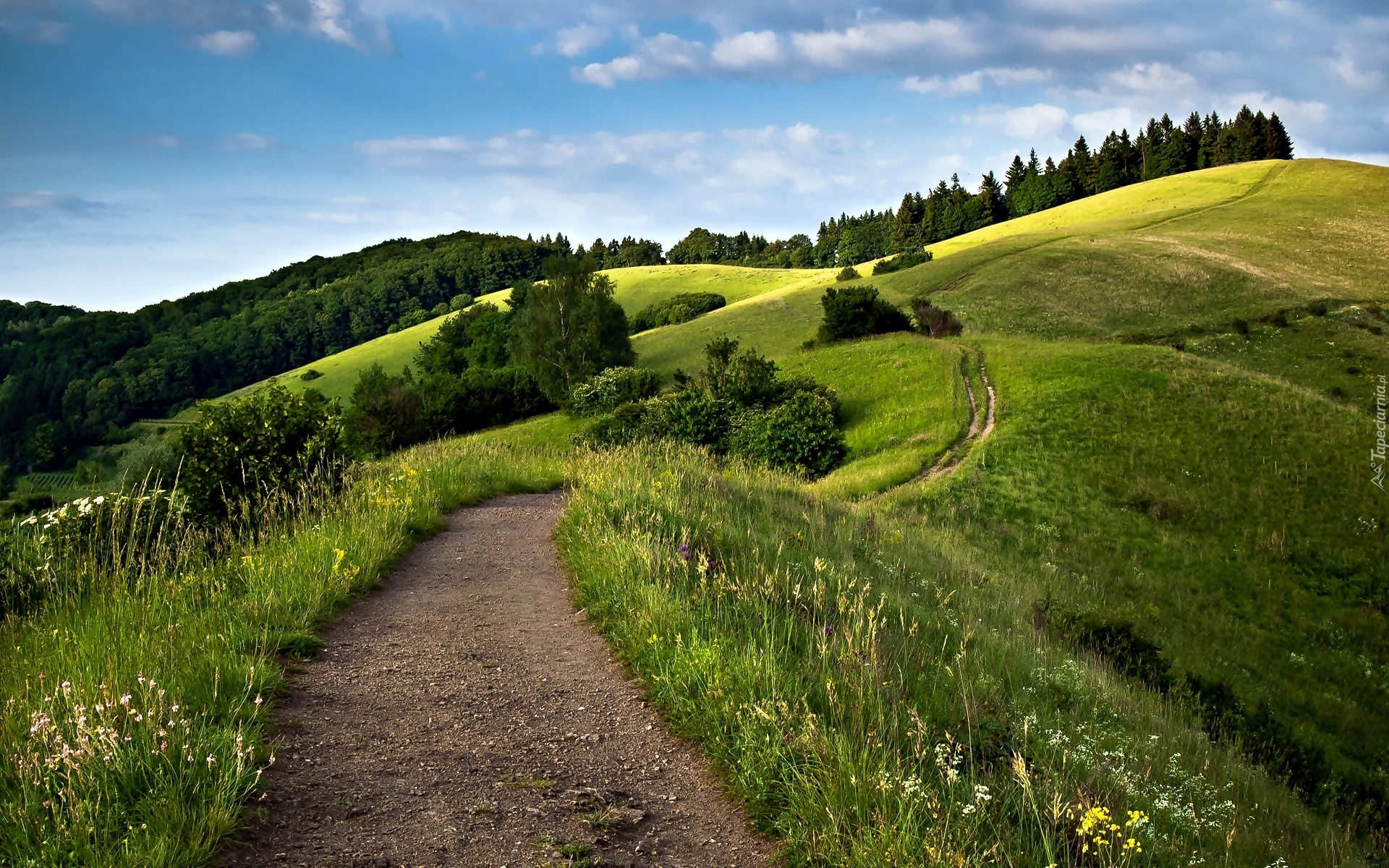 Edytor tapety: Lato, Łąka, Wzgórza, Droga