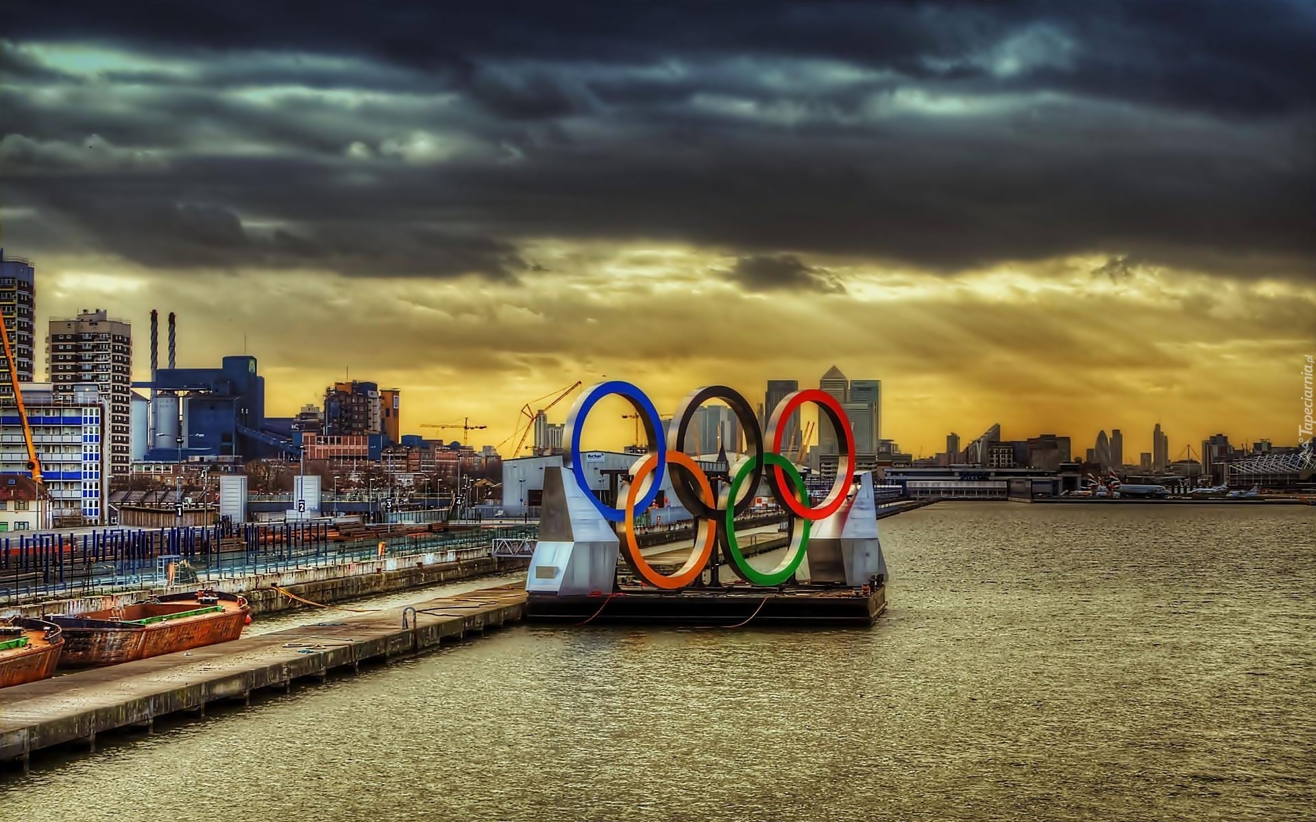 Edytor tapety: Koło, Olimpijskie, Morze, Niebo, Zdjęcie miasta