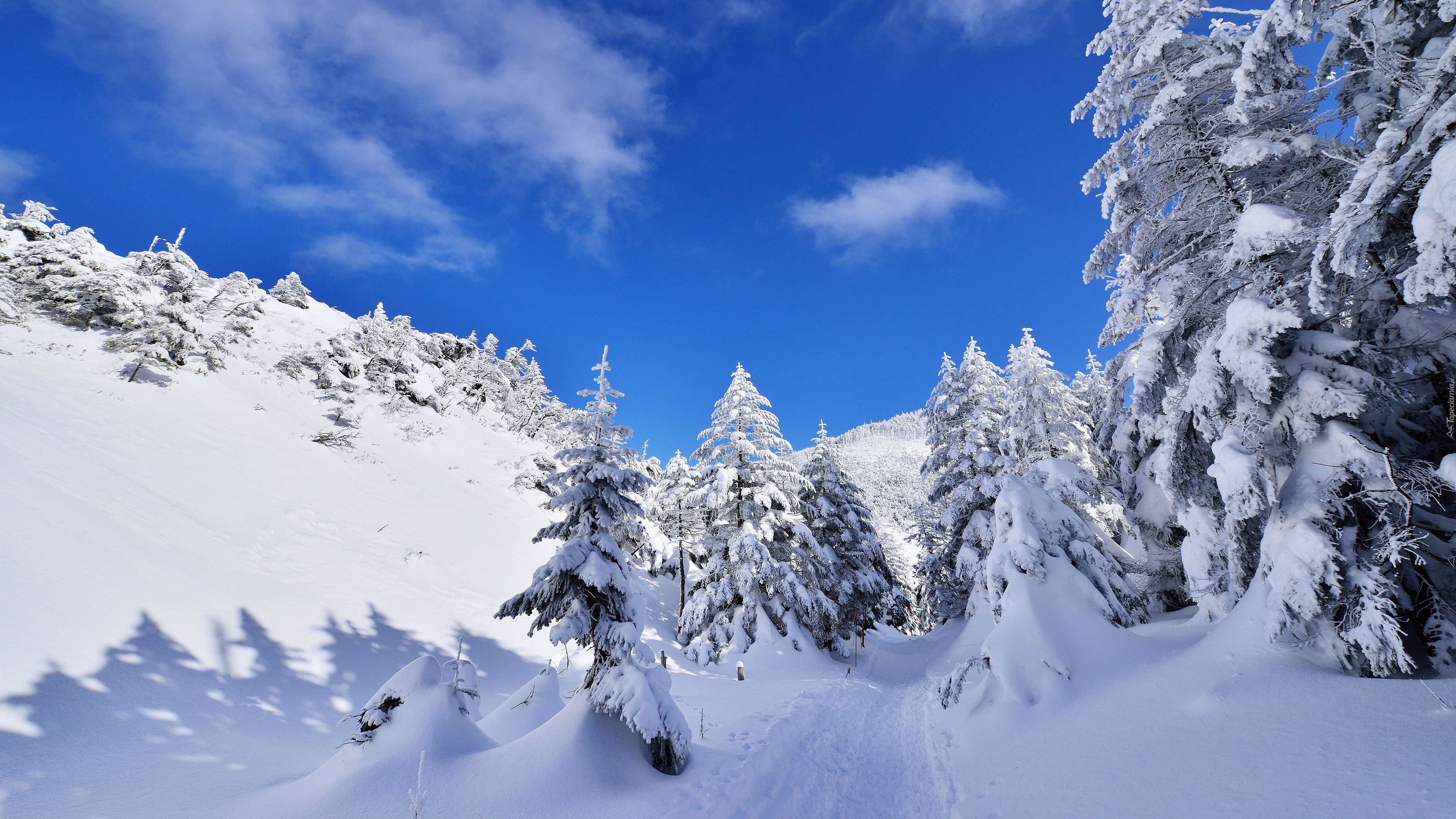 Edytor tapety: Zima, Góry, Świerki