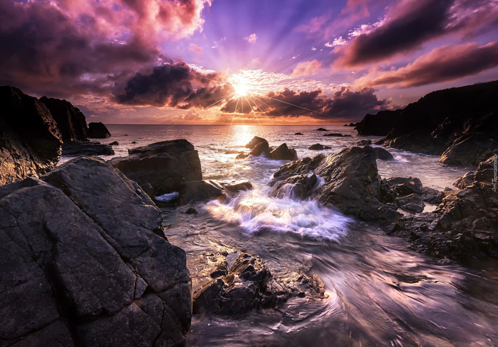 Edytor tapety: Morze, Skały, Wschód, Słońca