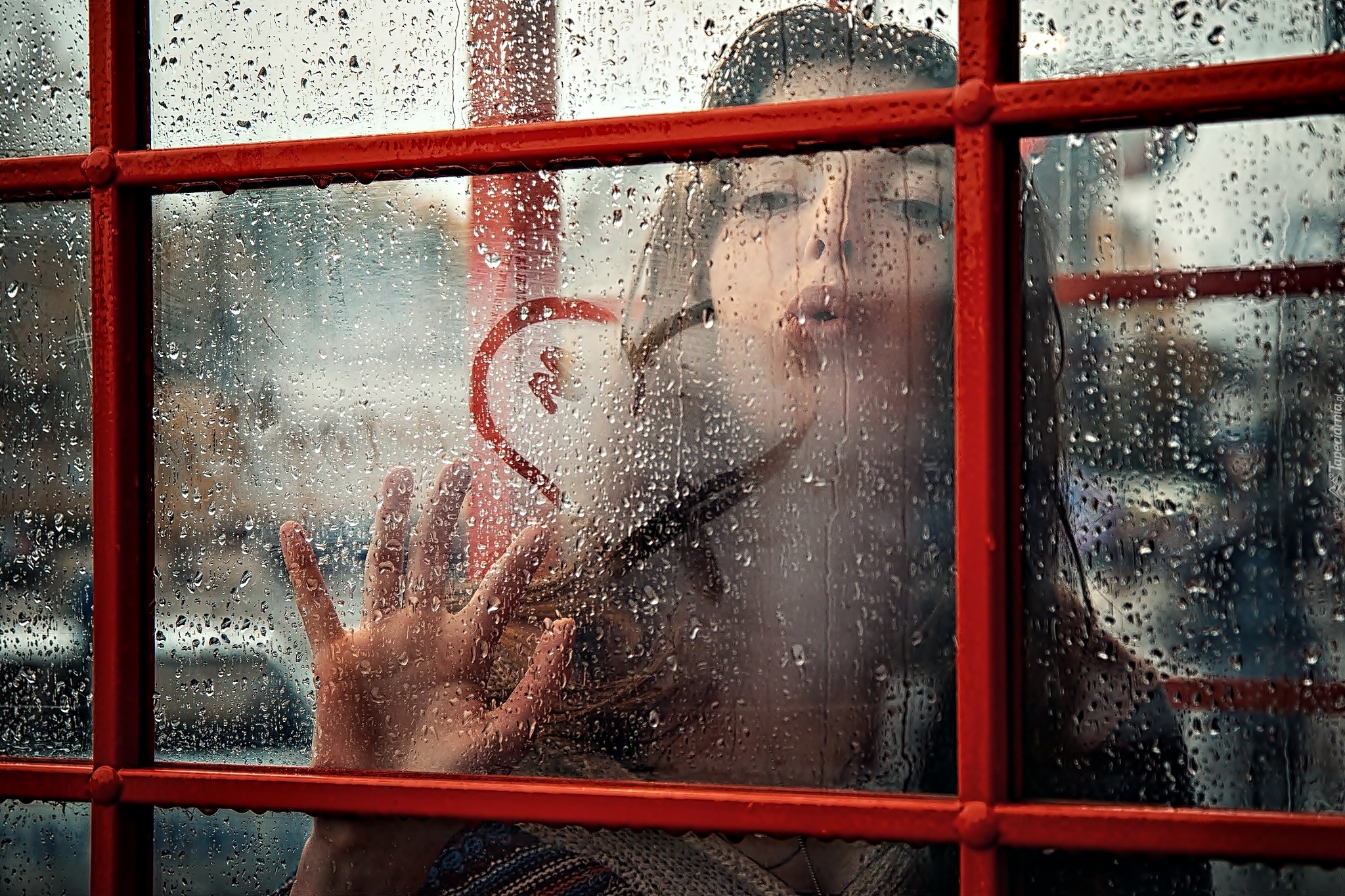 Edytor tapety: Kobieta, Szyba, Krople, Serce, Dłoń, Miłosne