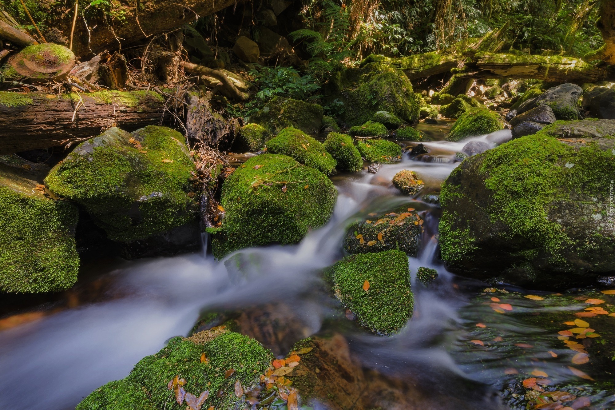 Edytor tapety: Potok, Kamienie, Kłody, Jesień