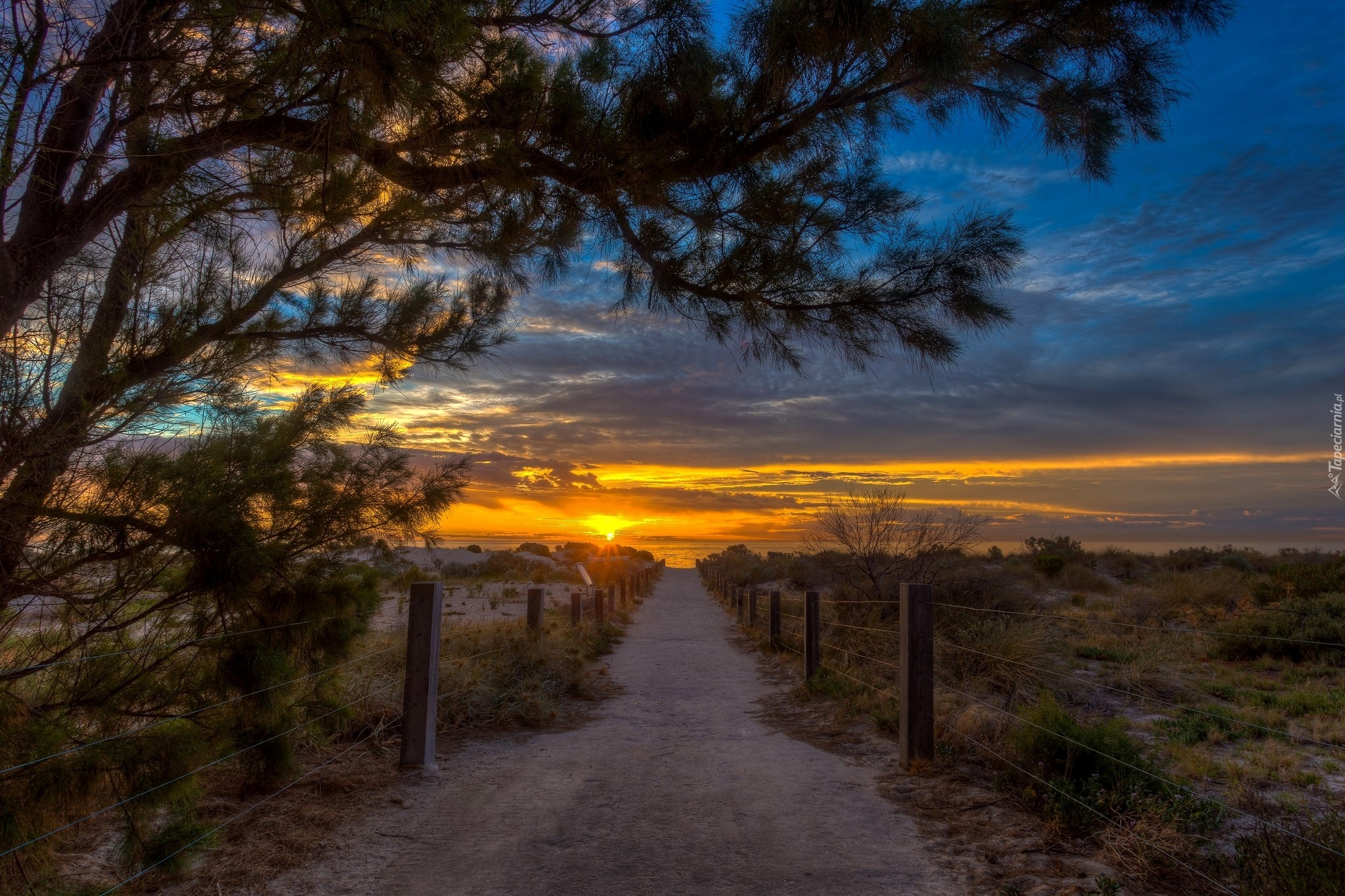 Edytor tapety: Zachód, Słońca, Ścieżka, Drzewo, Morze