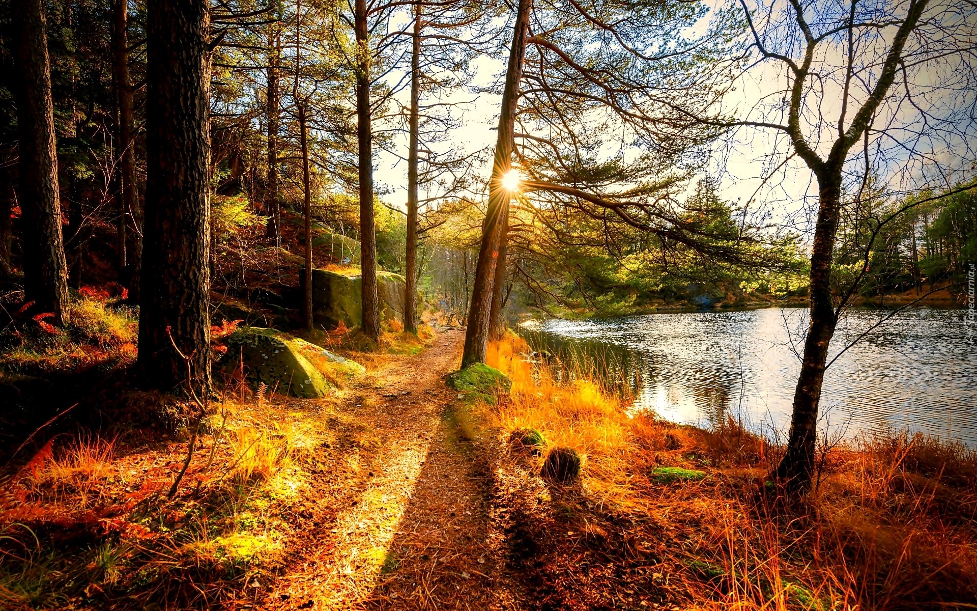 Edytor tapety: Rzeka, Droga, Drzewa, Jesień