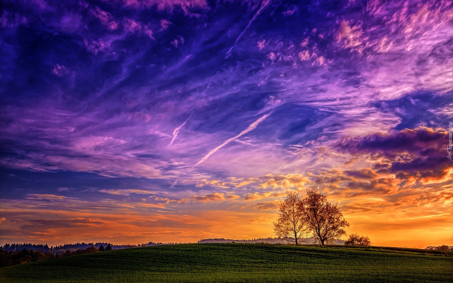 Edytor tapety: Zachód, Słońca, Niebo, Drzewo