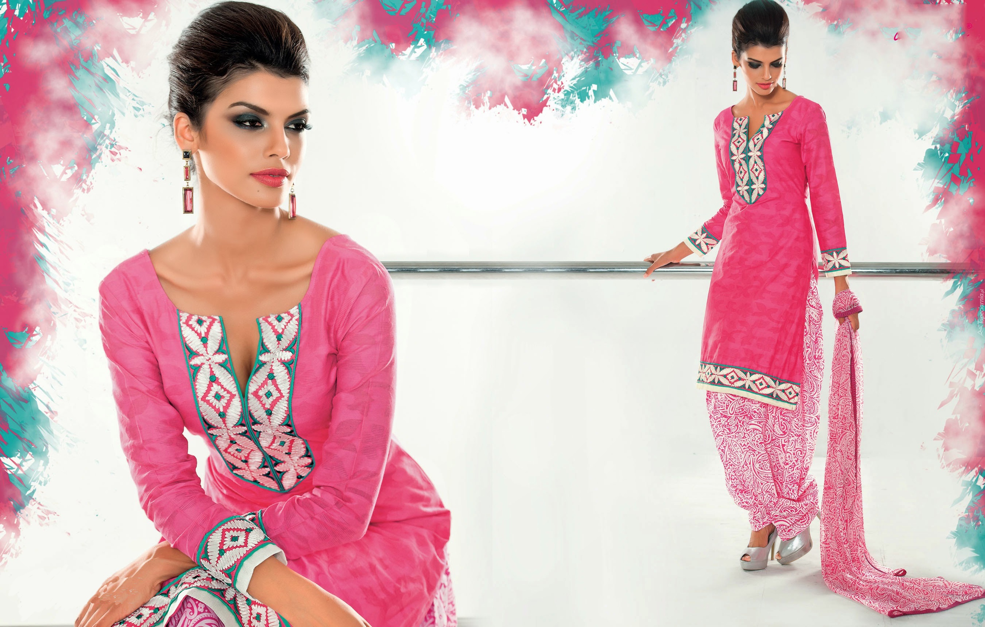 Edytor tapety: Kobieta, Strój, Salwar, Kameez, Makijaż, Biżuteria