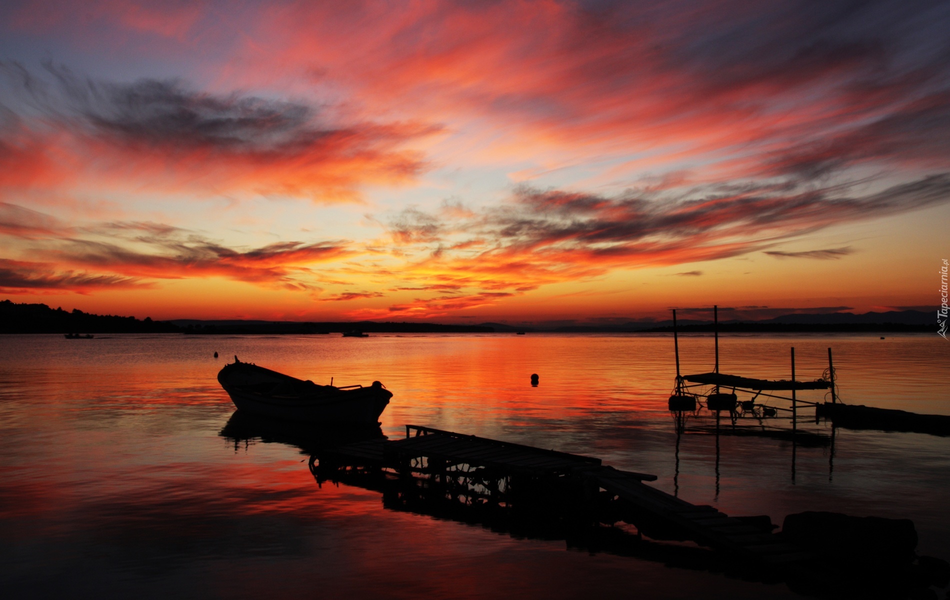Edytor tapety: Zachody słońca, Łódka, Jezioro