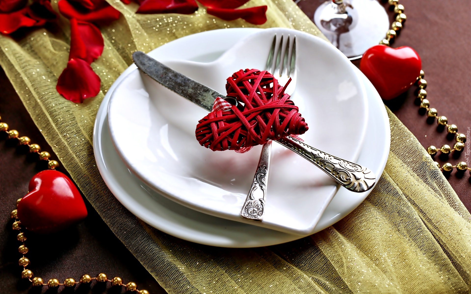 Edytor tapety: Walentynki, Zastawa, Stołowa, Serca, Koraliki