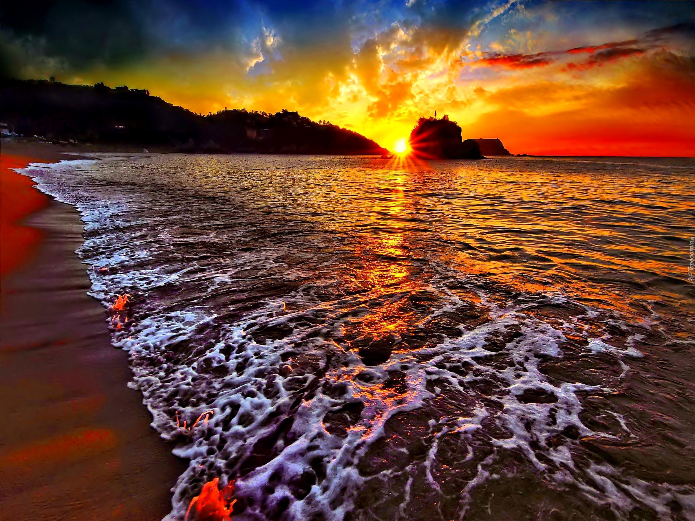 Edytor tapety: Zachód Słońca, Plaża, Morze