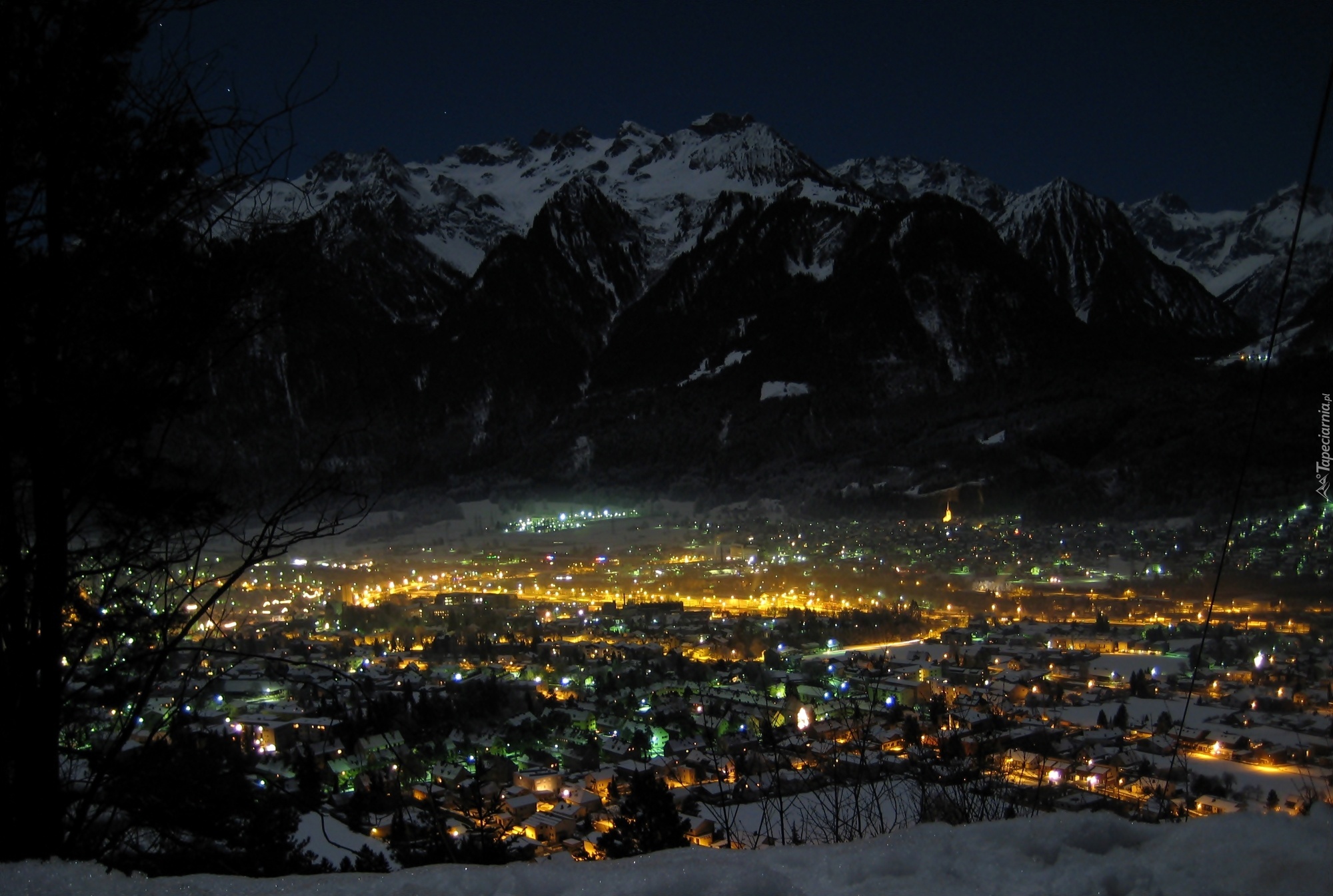 Edytor tapety: Noc, Miasto, Góry, Austria, Bludenz, Z lotu ptaka