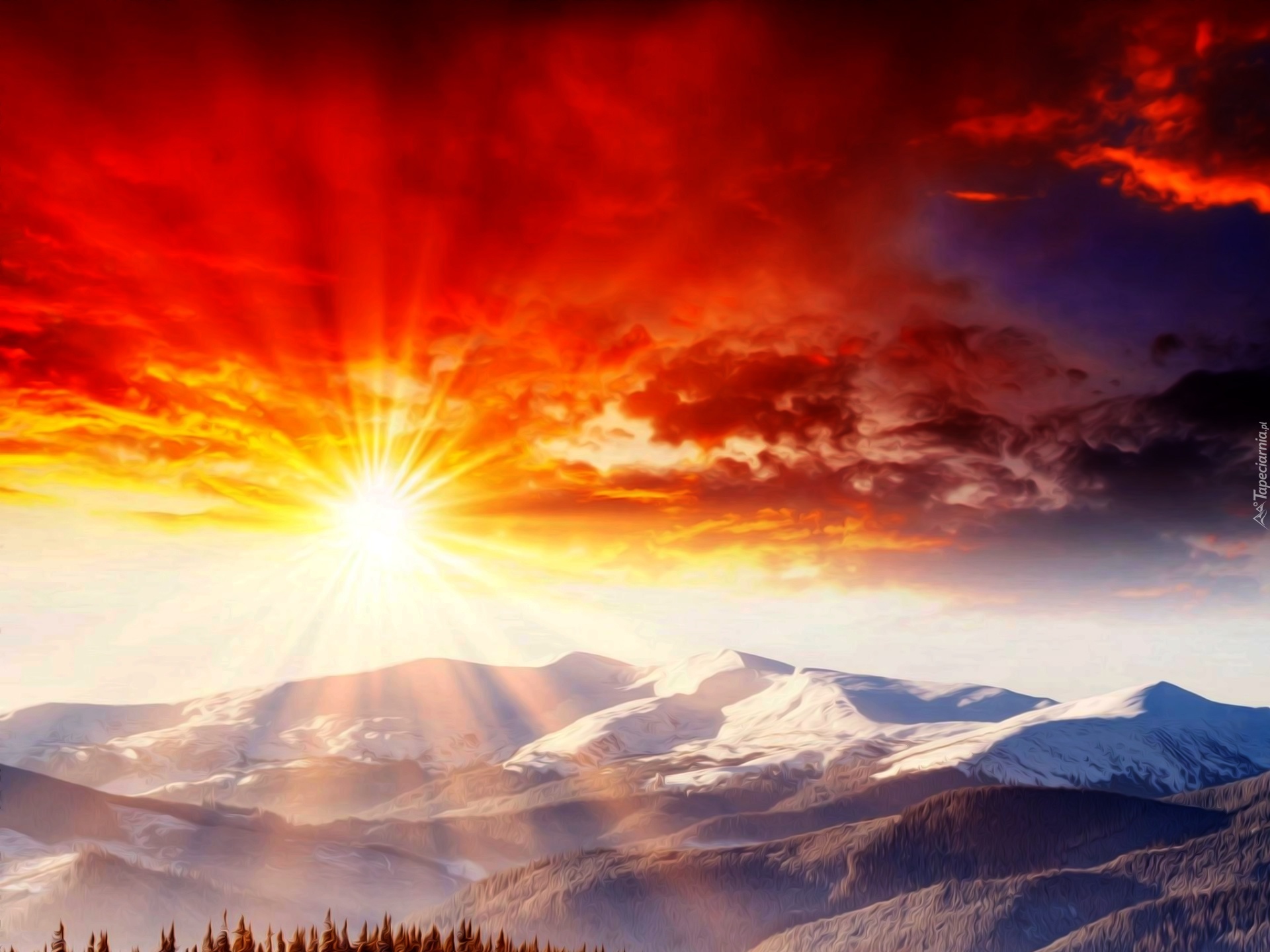 Edytor tapety: Chmury, Niebo, Góry, Promienie słońca