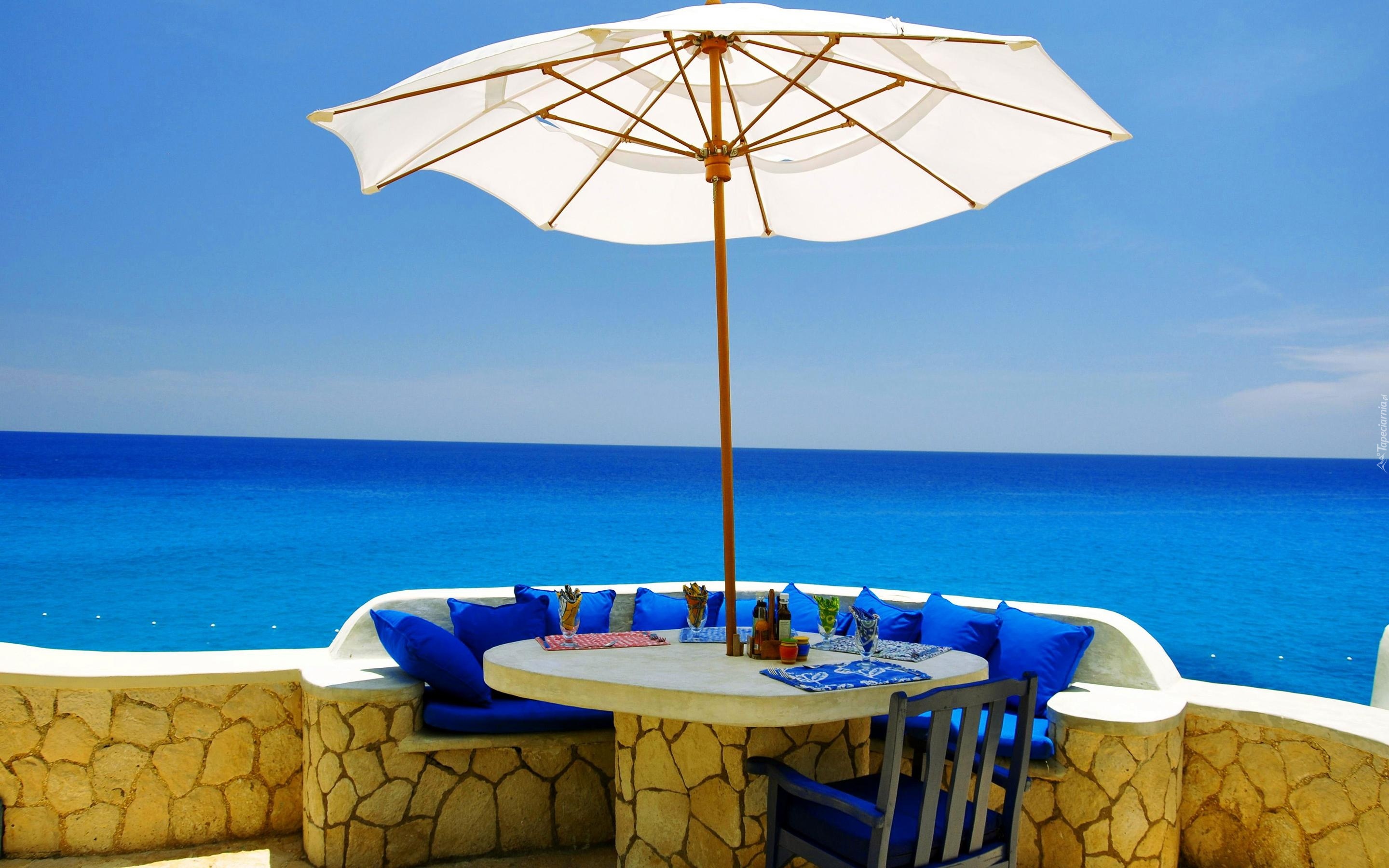 Edytor tapety: Parasol, Stolik, Taras, Morze, Wakacje