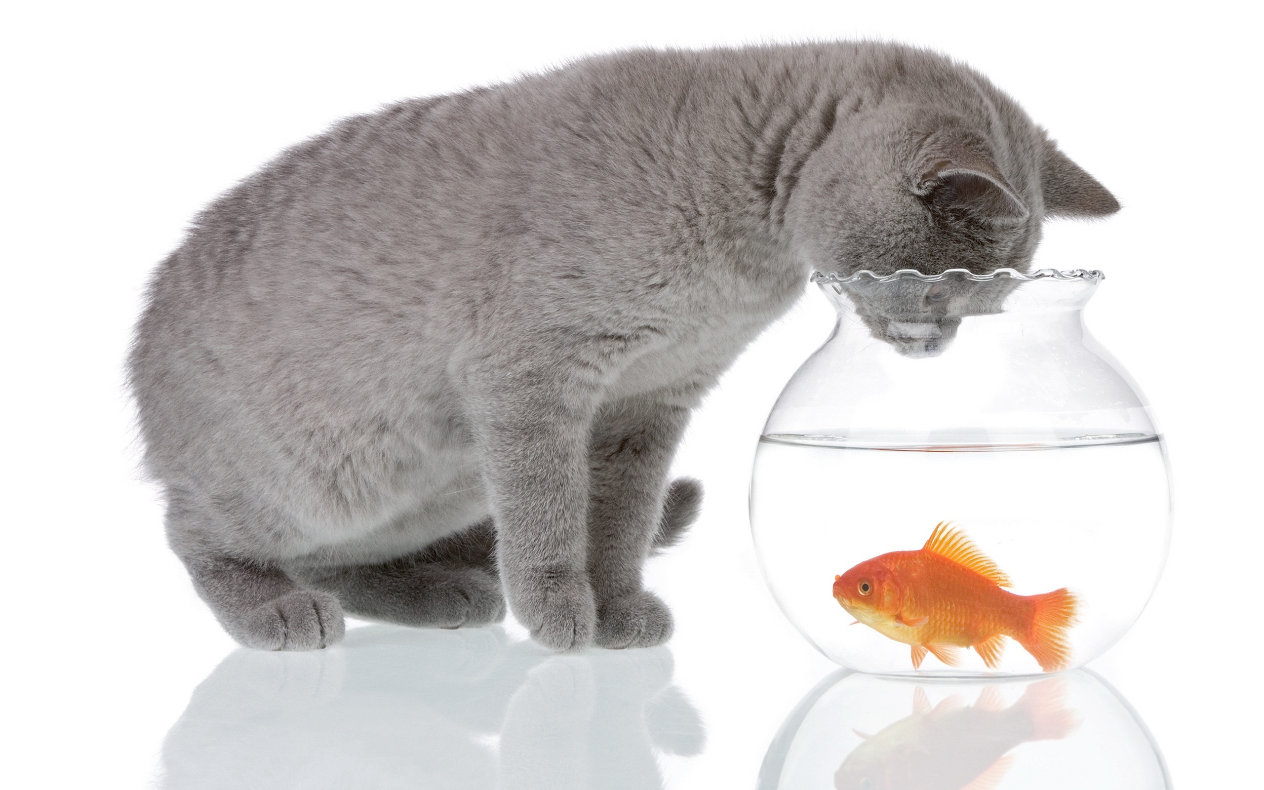 Edytor tapety: Szary, Kotek, Akwarium, Rybka