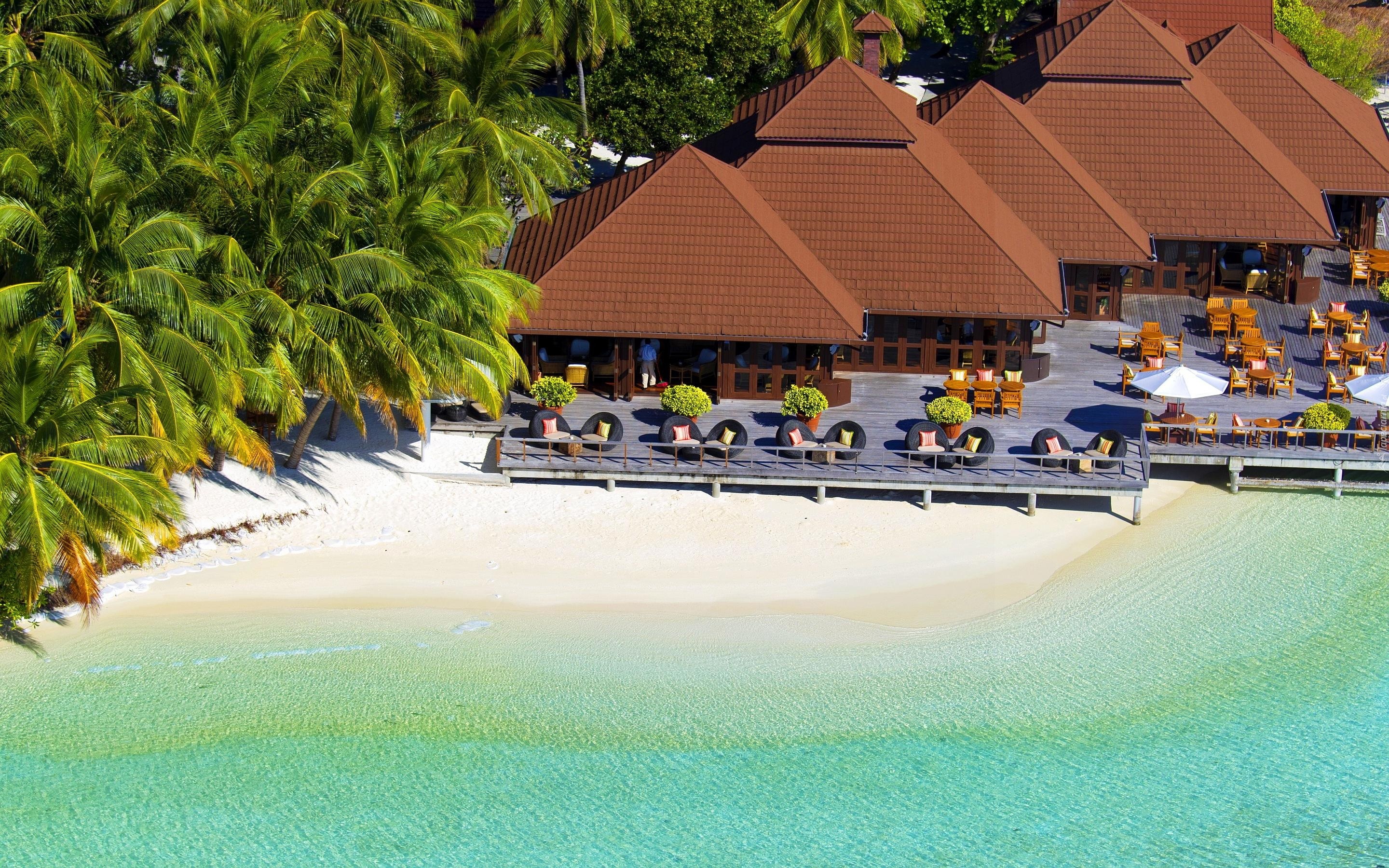 Edytor tapety: Domki, Palmy, Morze