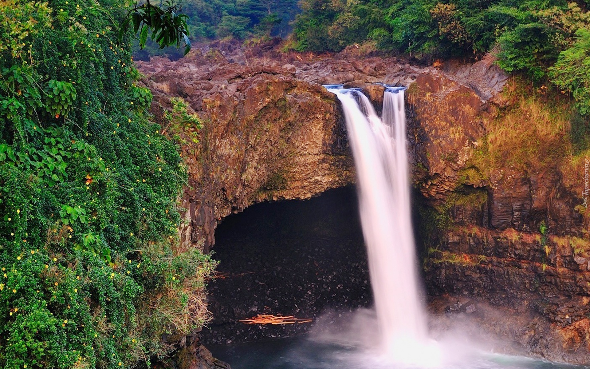 Edytor tapety: Wodospad, Tunel, Krzewy