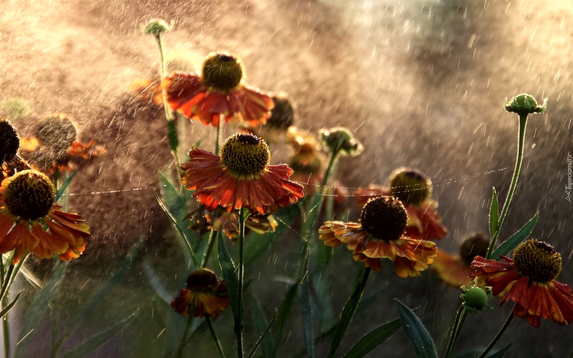 Edytor tapety: Kwiaty, Dzielżan, Pajęczyna, Deszcz