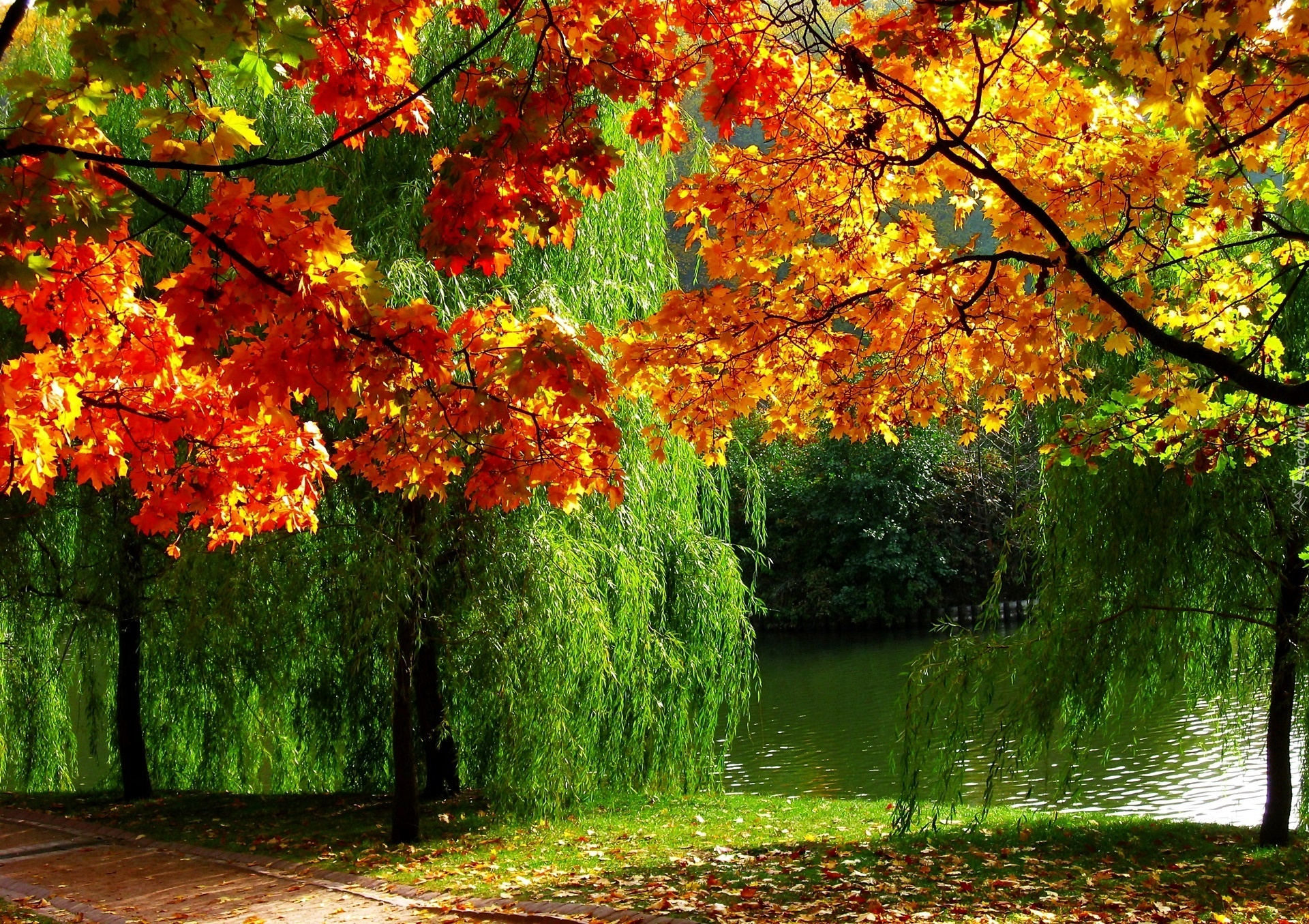 Edytor tapety: Park, Rzeka, Jesienne, Drzewa