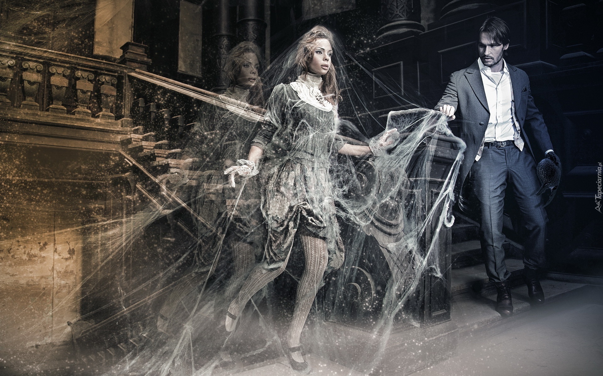 Edytor tapety: Fantasy, Kobieta, Pajęczyna, Schody, Mężczyzna