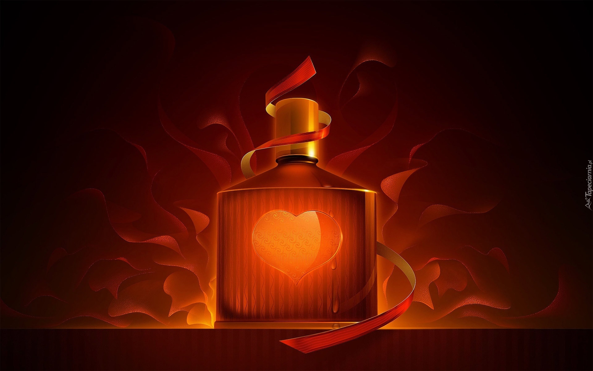 Edytor tapety: Walentynki, Perfum, Serce, wstążka, Płomienie