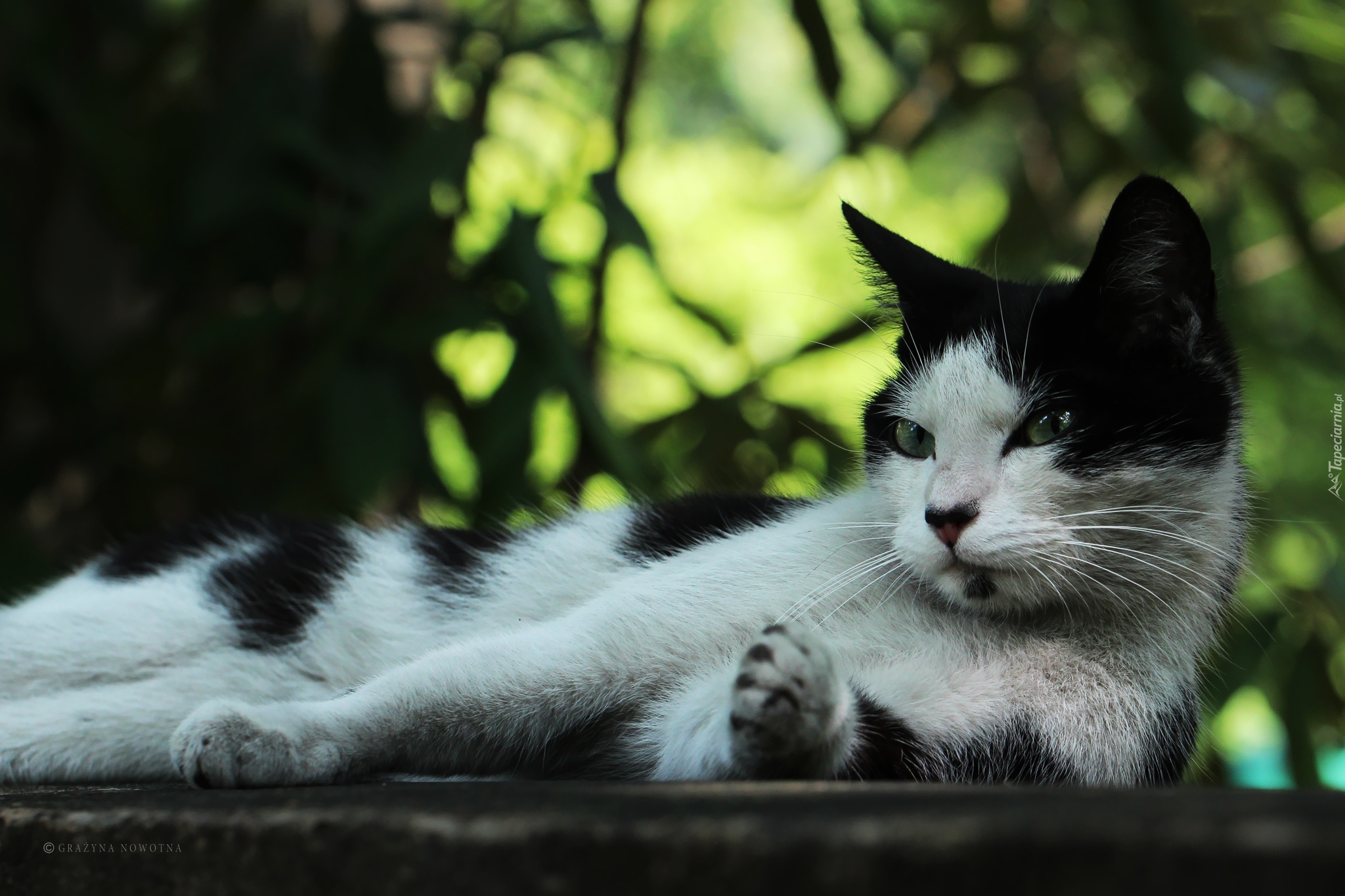 Edytor tapety: Biało, Czarny, Kot, Odpoczynek