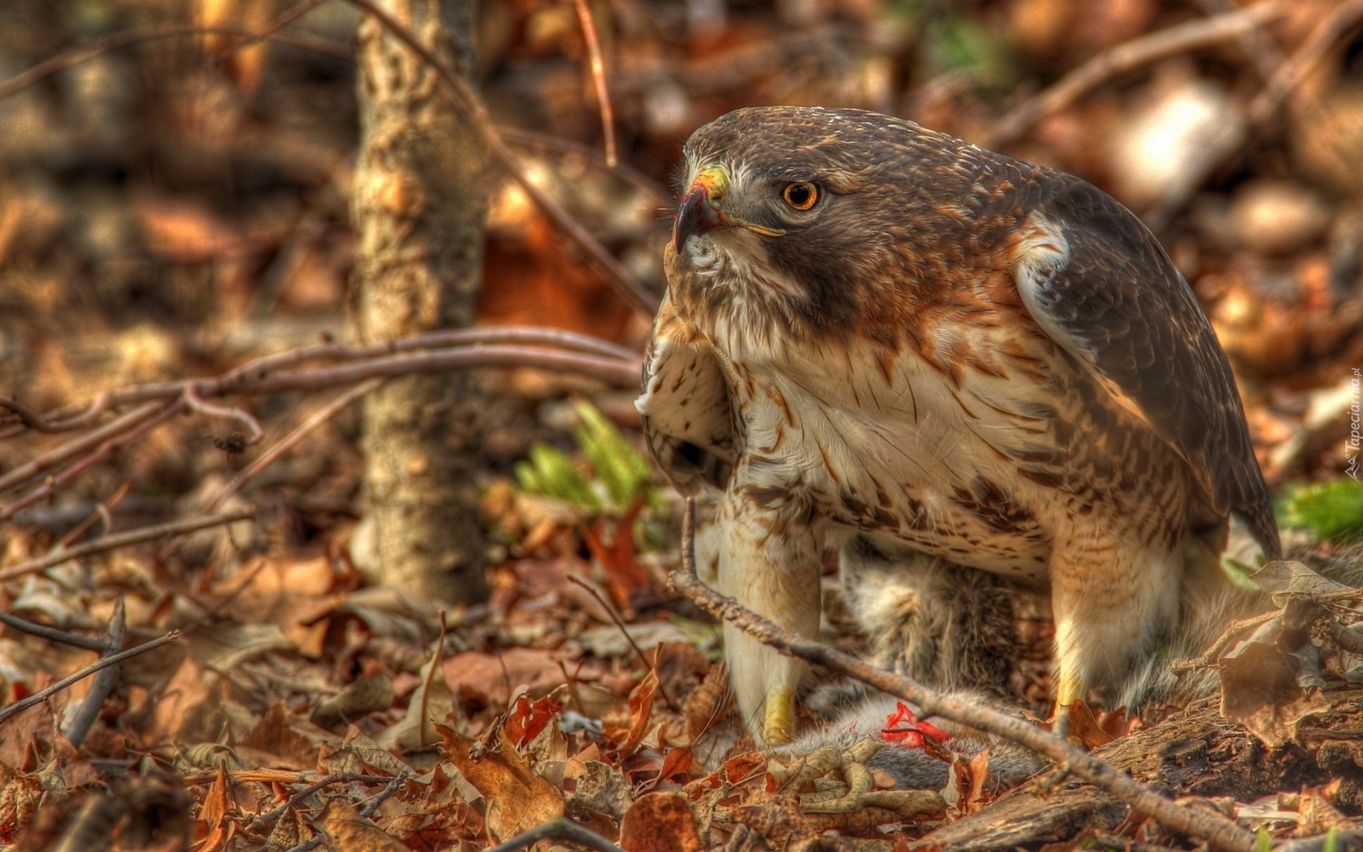 Edytor tapety: Jastrząb, Liście, Gałązki