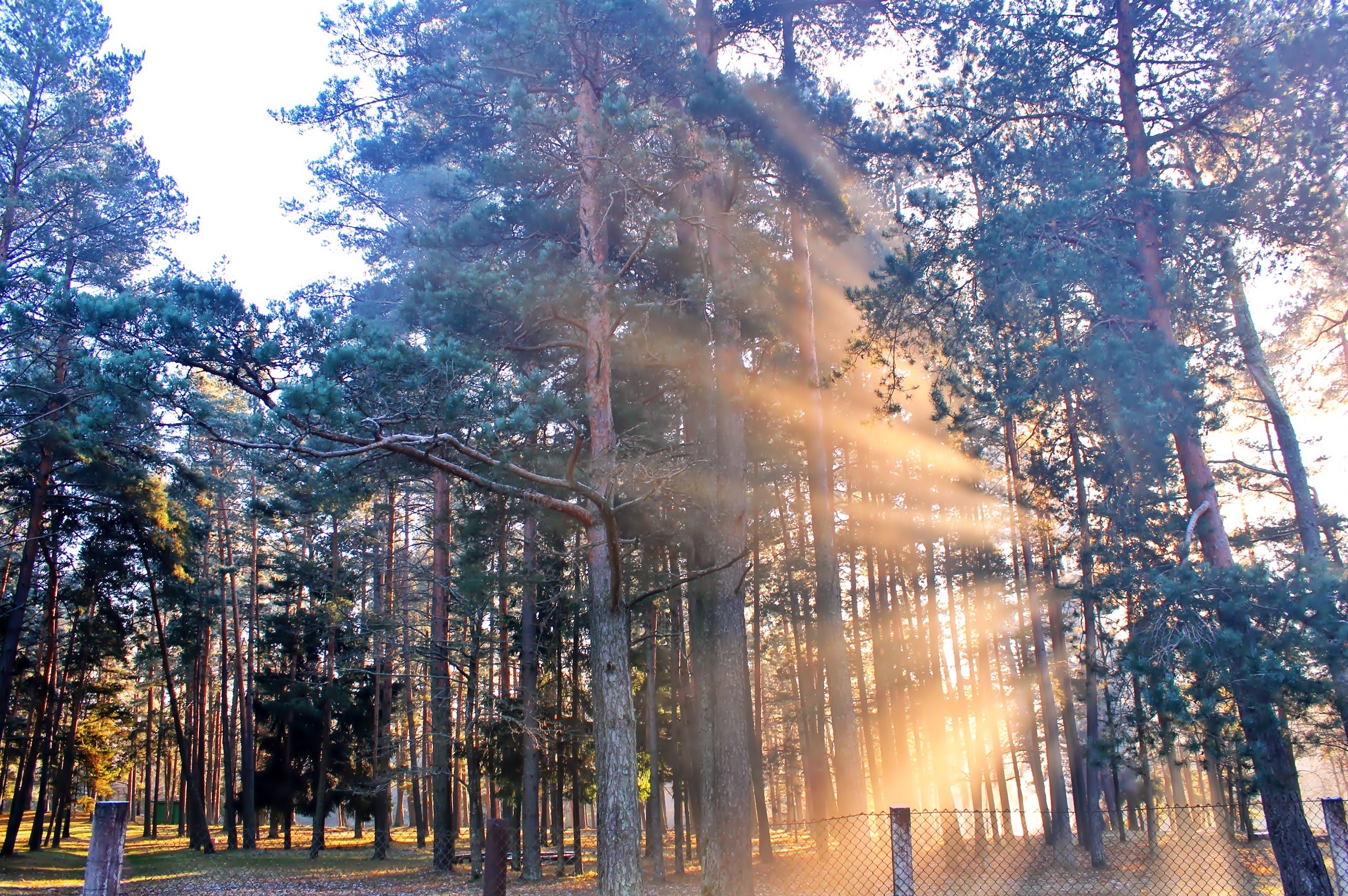 Edytor tapety: Promienie, Słońca, Las, Sosna