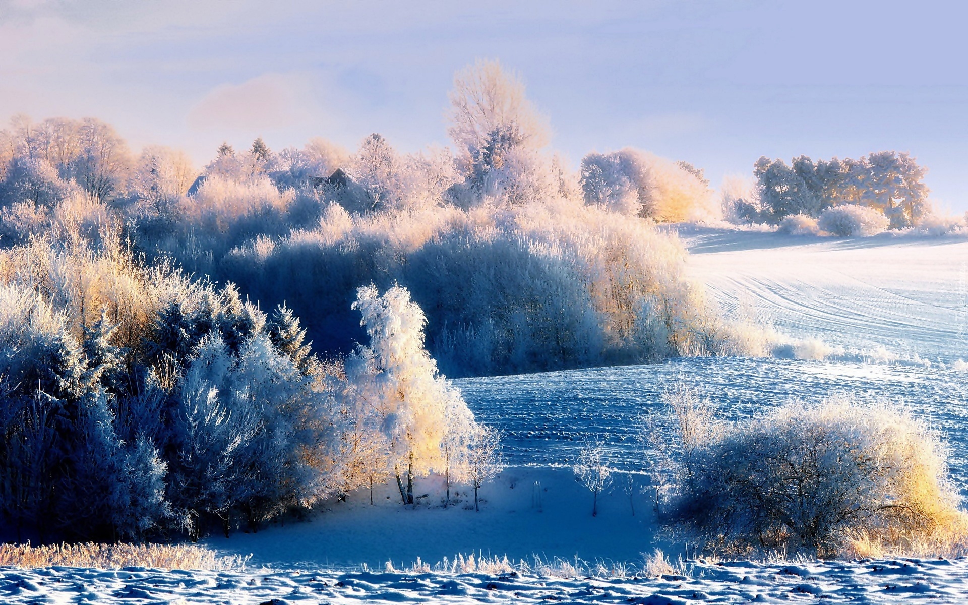 Edytor tapety: Zima, Szron, Pola, Drzewa
