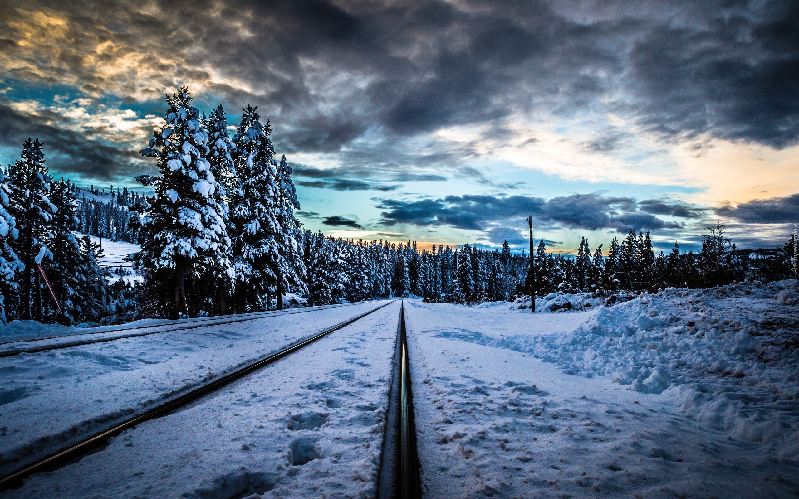 Edytor tapety: Zima, Tory, Niebo, Chmury, Drzewa