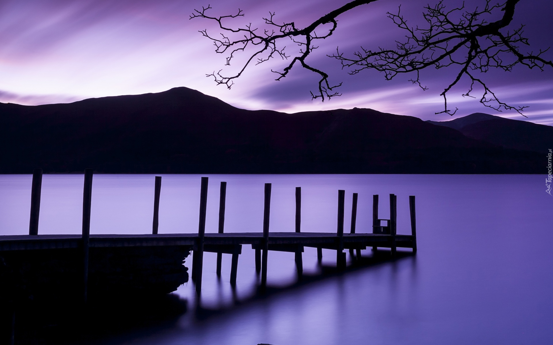 Edytor tapety: Lato, Jezioro, Zmierzch, Góry, Molo