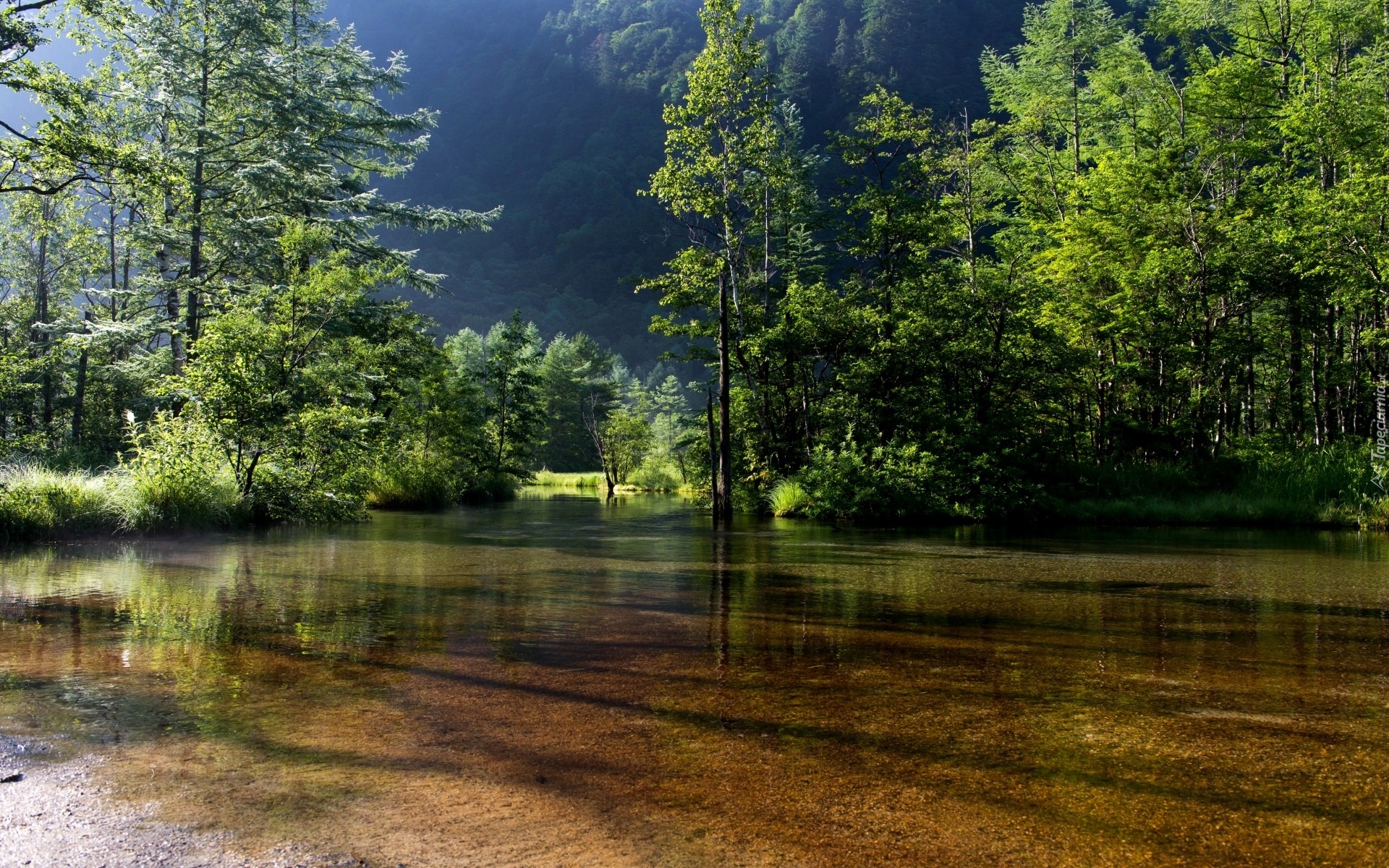 Edytor tapety: Las, Rozlewisko, Cienie, Drzew, Lato
